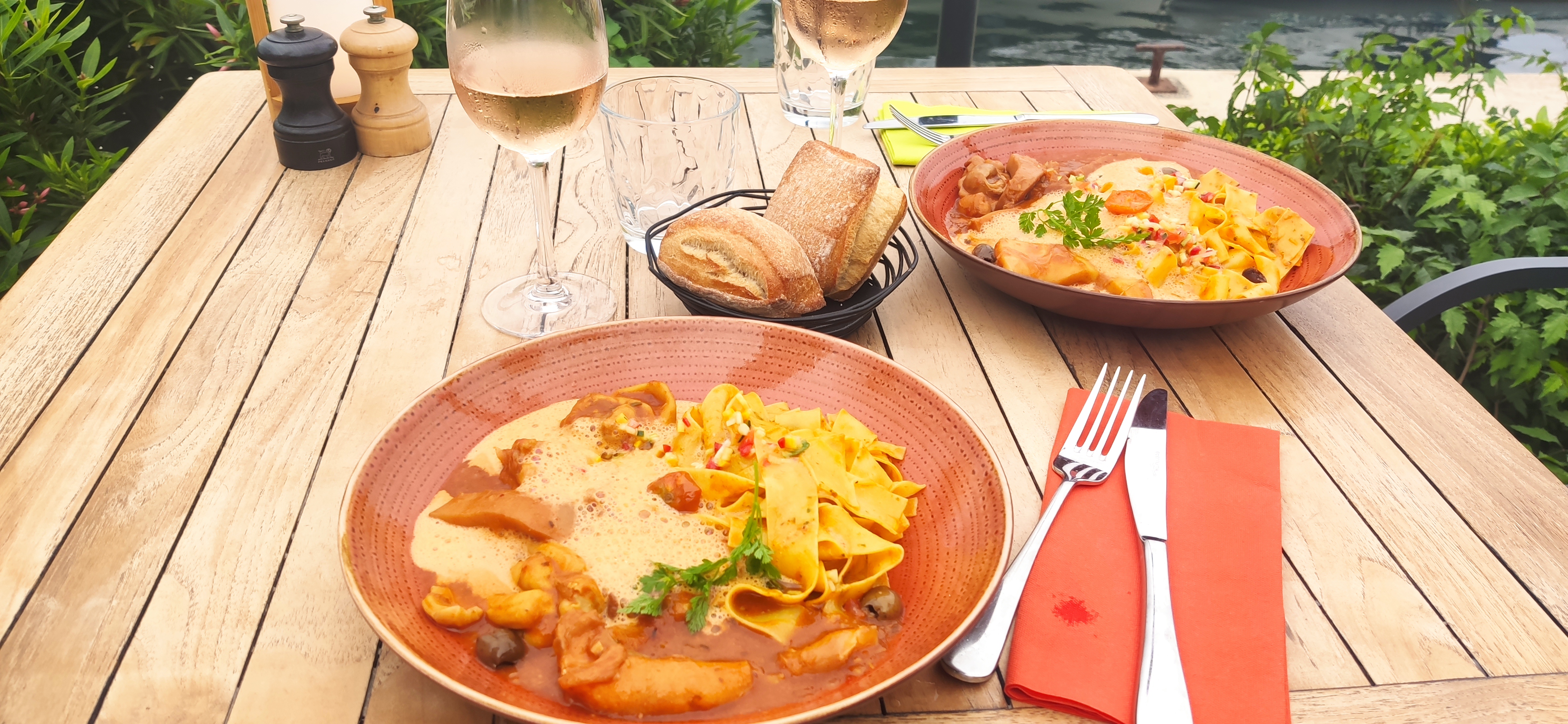 Excellent. Les pâtes au thon sont vraiment très bonnes. Mon conjoint qui n'aime pas le poisson à été bluffé. Le veau est très bon aussi, tendre et goûteux. L'île flottante à partager est excellente. Le cadre est super et l'accueil au top. Rien a redire. Je recommande.