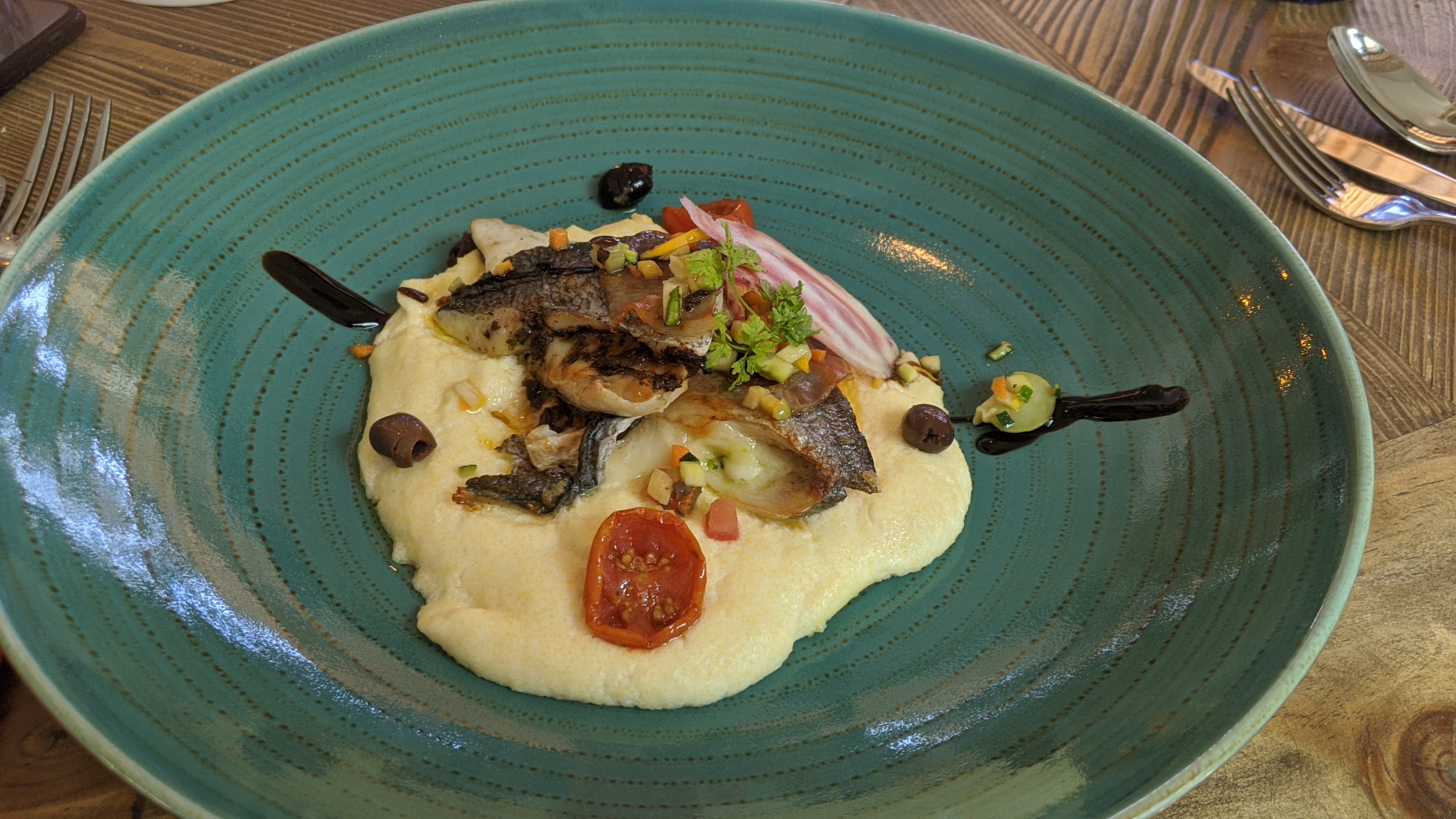 Restaurant au bord du port, cadre très agréable (intérieur et extérieur) service un peu lent mais serveurs très sympathiques. Poissons frais et locaux avec un bon rapport qualité prix