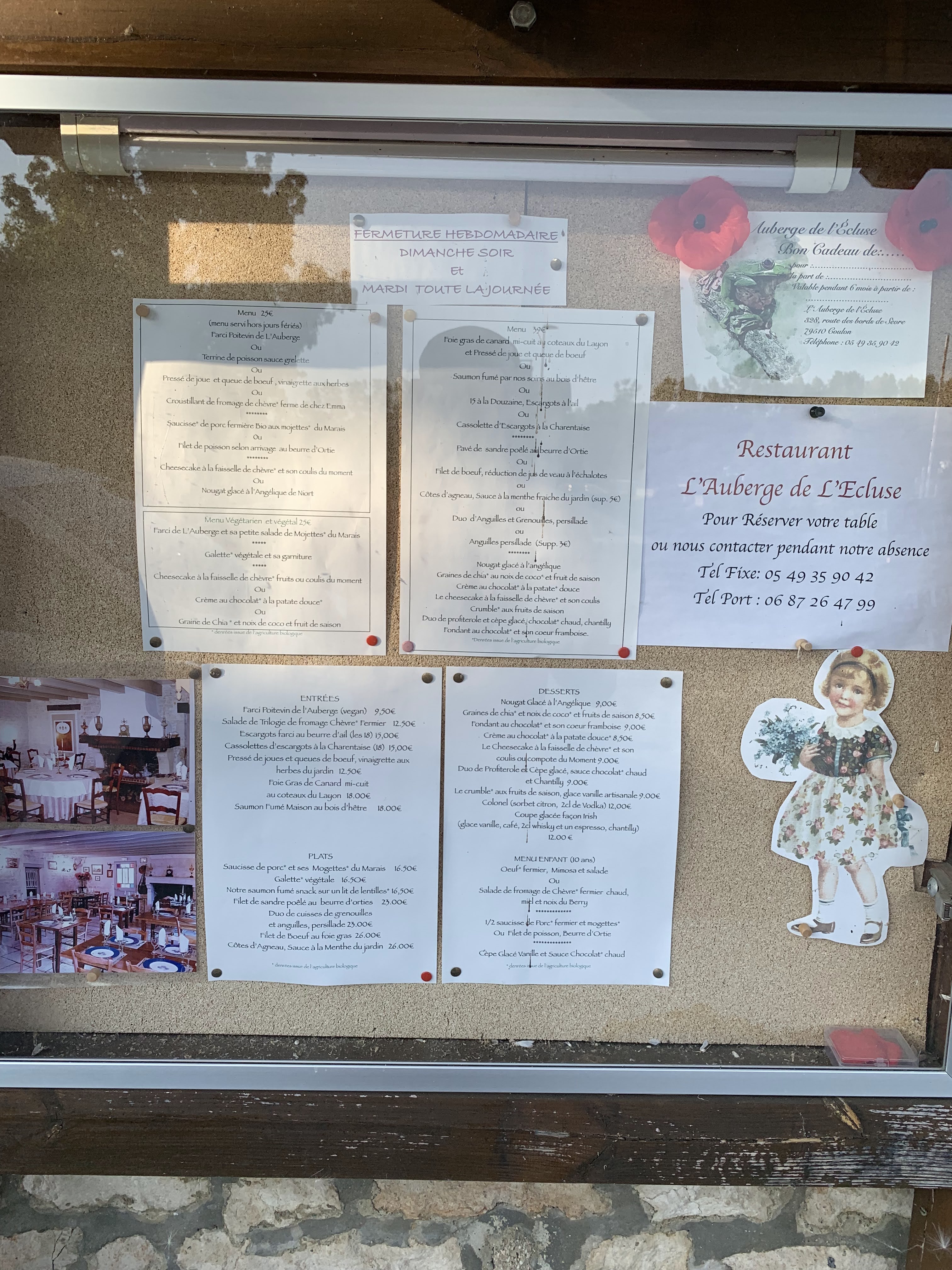Que dire sinon que c'est une découverte superbe. Cette auberge a été récemment reprise, et tout est au top, à commencer par la cuisine. A goûter absolument : l'agneau sauce menthe, une merveille. Les viandes sont fondantes et goûteuses, les assaisonnements parfaits, la petite carte des vins réserves de très belles surprises (le Château de Ninon par exemple), et l'accueil est aussi sympathique qu'attentionné. Qui plus est, il n'y a que 300 mètres environ à parcourir en face pour se retrouver en plein coeur du marais mouillé. Que du bonheur ! Allez-y sans hésiter. IMPORTANT : Il y a des soucis de téléphone en ce moment, mais ils devraient être rapidement résolus, et l'auberge reste accessible malgré les travaux sur la route des bords de sèvre.