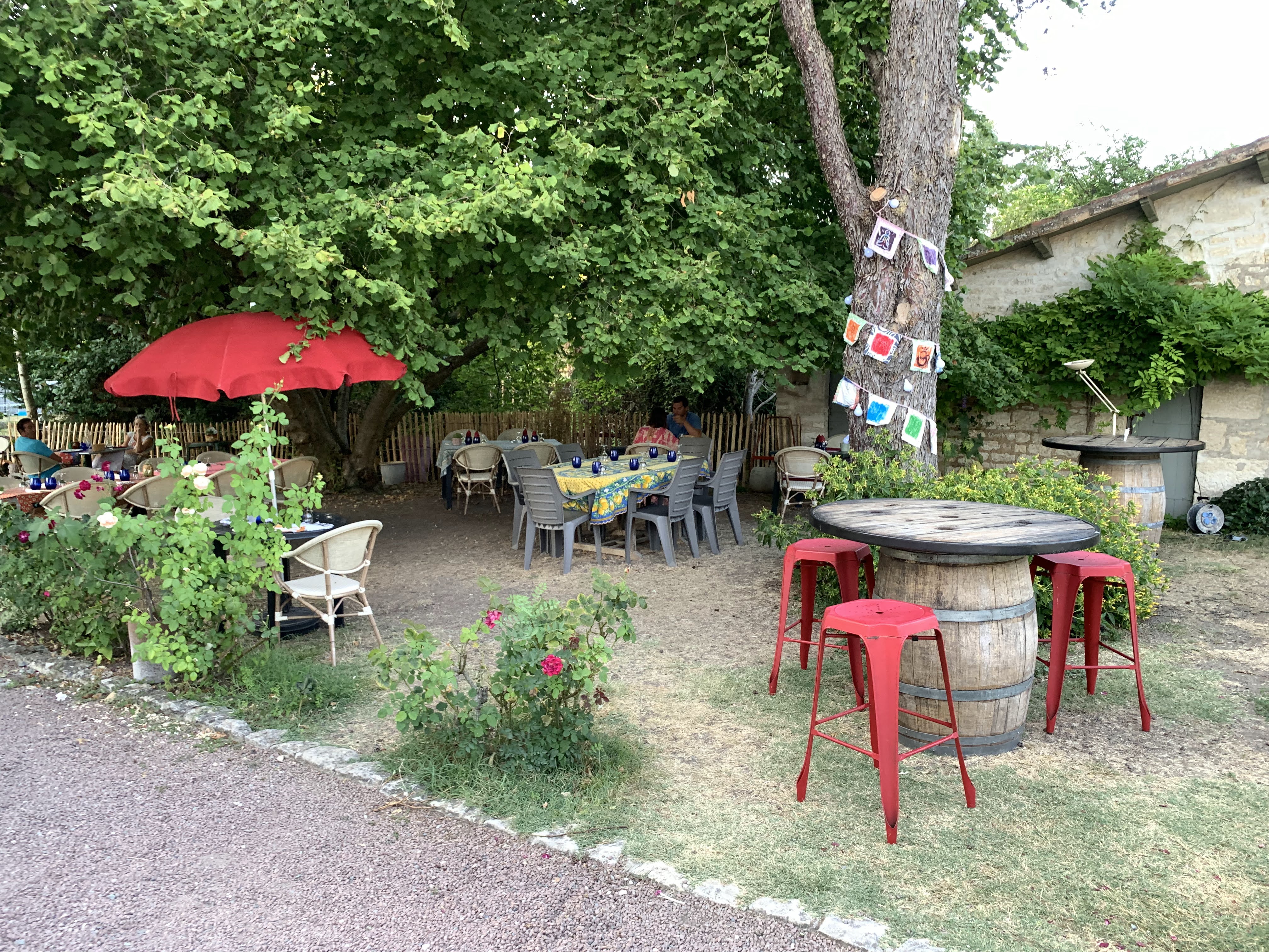 Cadre bucolique pour ce jardin enchanteur et animalier ( poules domestiquées,canards plongeurs, oies,petits chiens 🐕 accueillants et même quelques moustiques qui s'invitent au festin. Félicitations, tout était très bon .