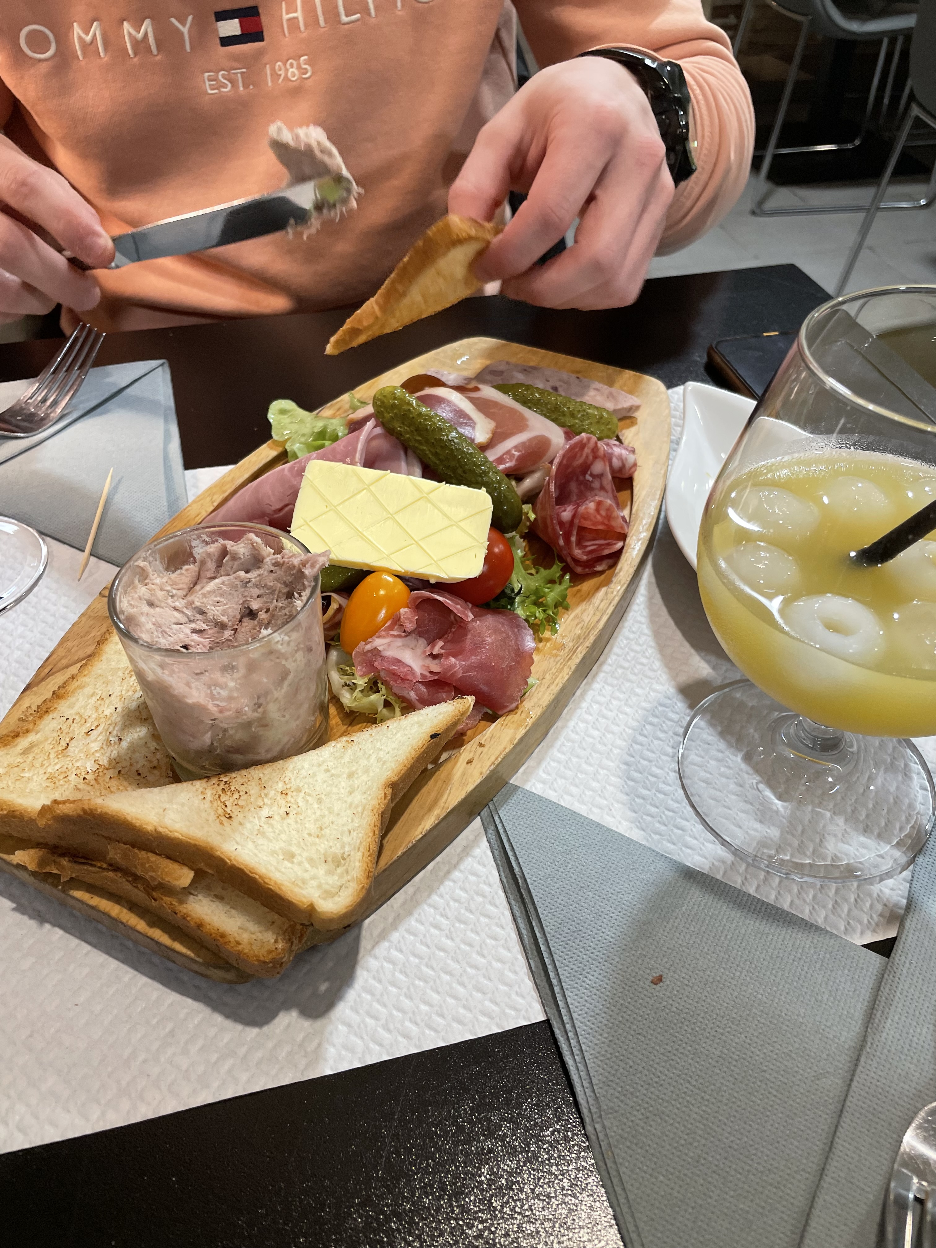 Pas terribles du tout viande dur planche apéro servie avec du pain de mie vraiment dessus