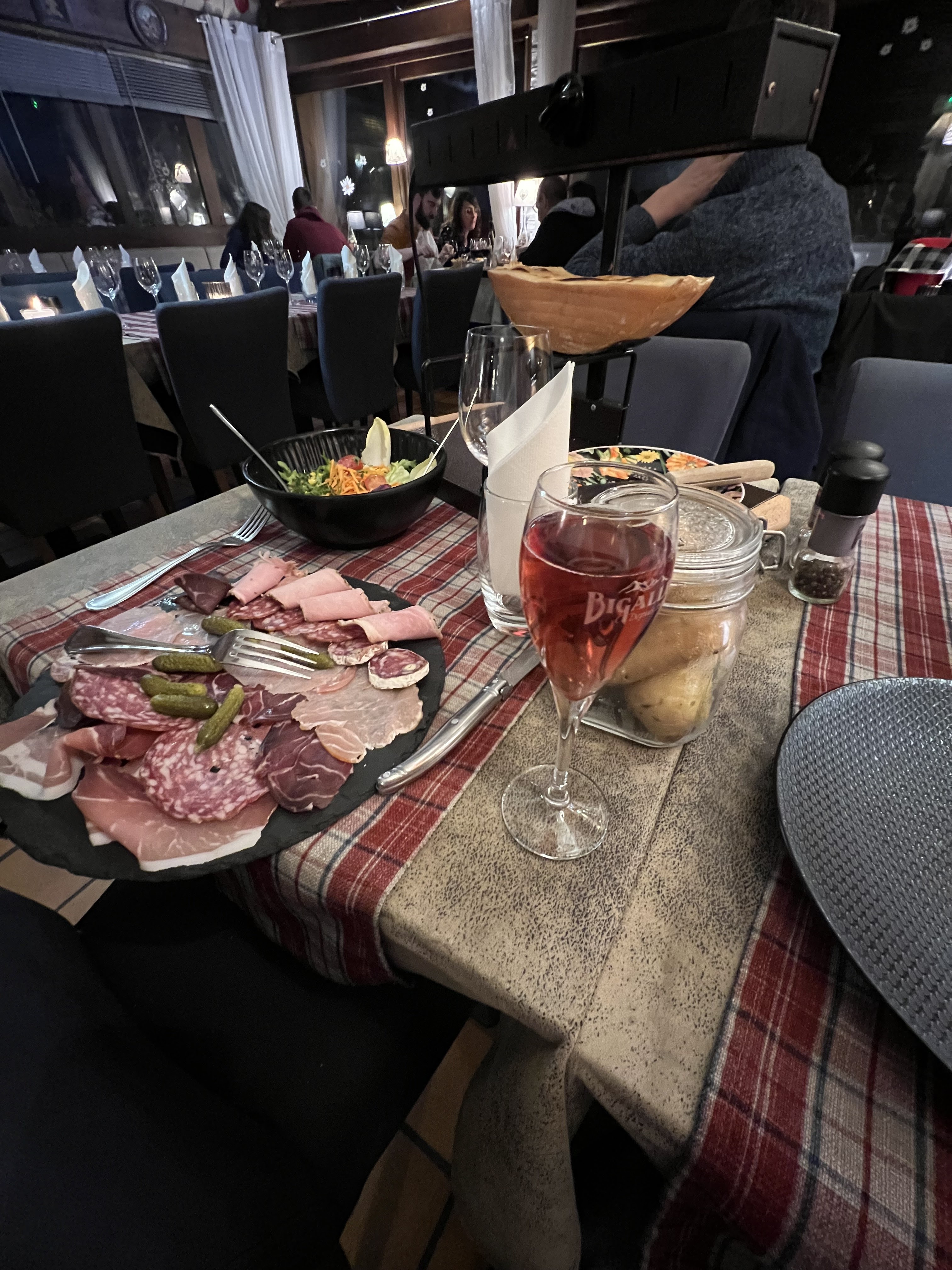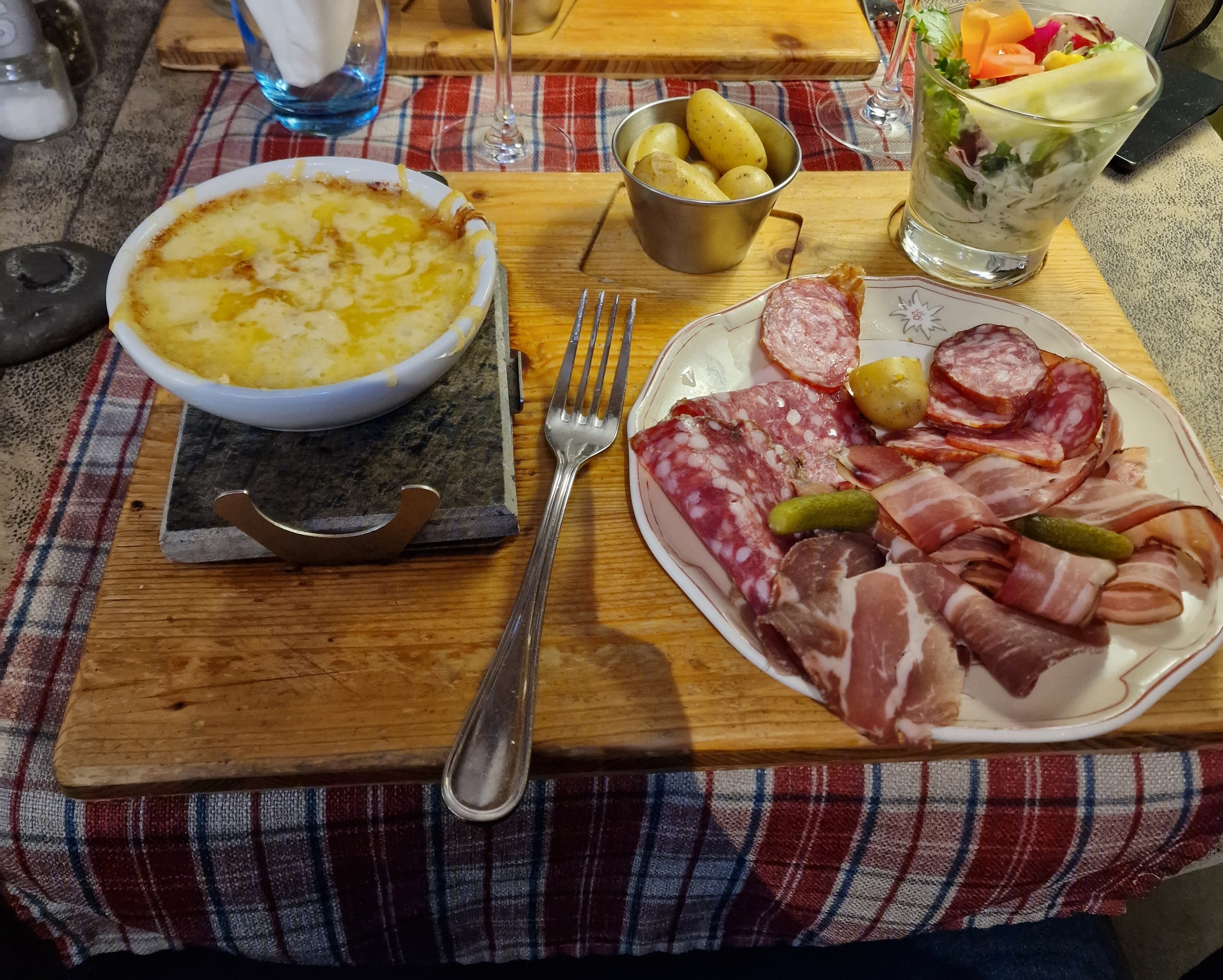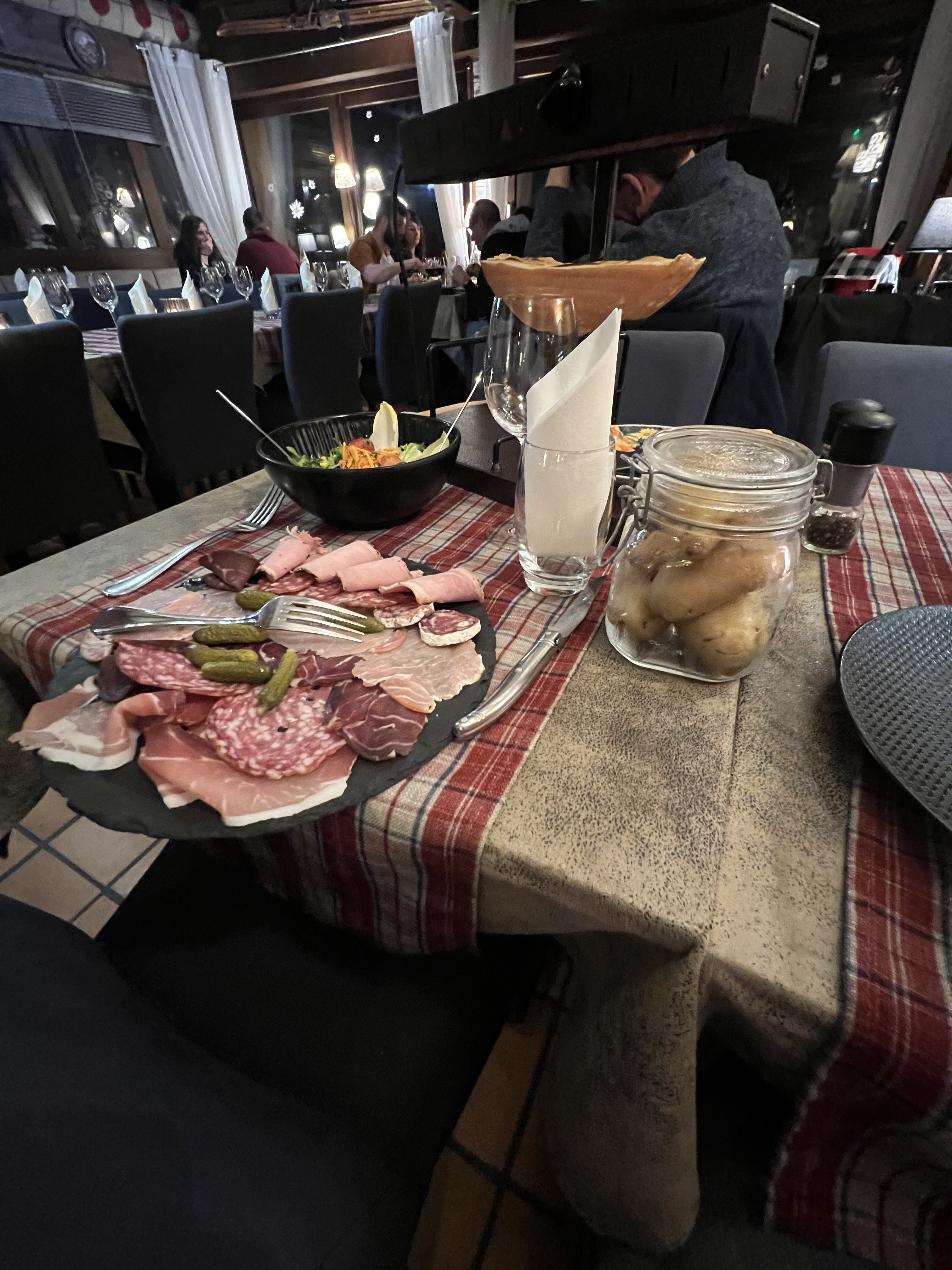 La salle était plaine, nous avons dû attendre notre table le patron nous a offert notre apéritif pour s'excuser, c'est rare. L'ambiance est très savoyarde, nous avons choisi la fondu charcuterie, salade c'était excellent, Le patron nous a même proposé de la charcuterie et salade en plus, Nous étions rassasié par ce bon repas.