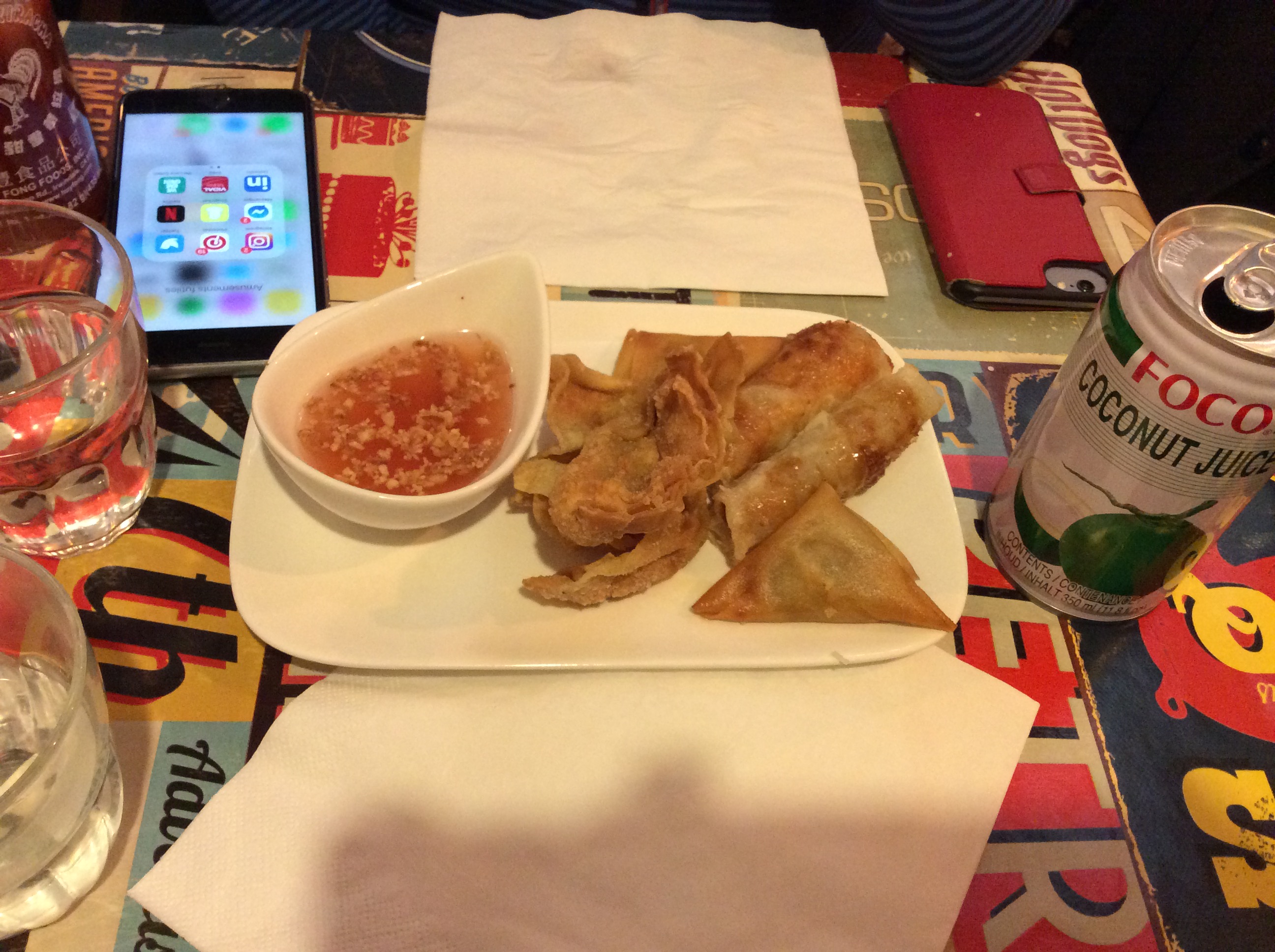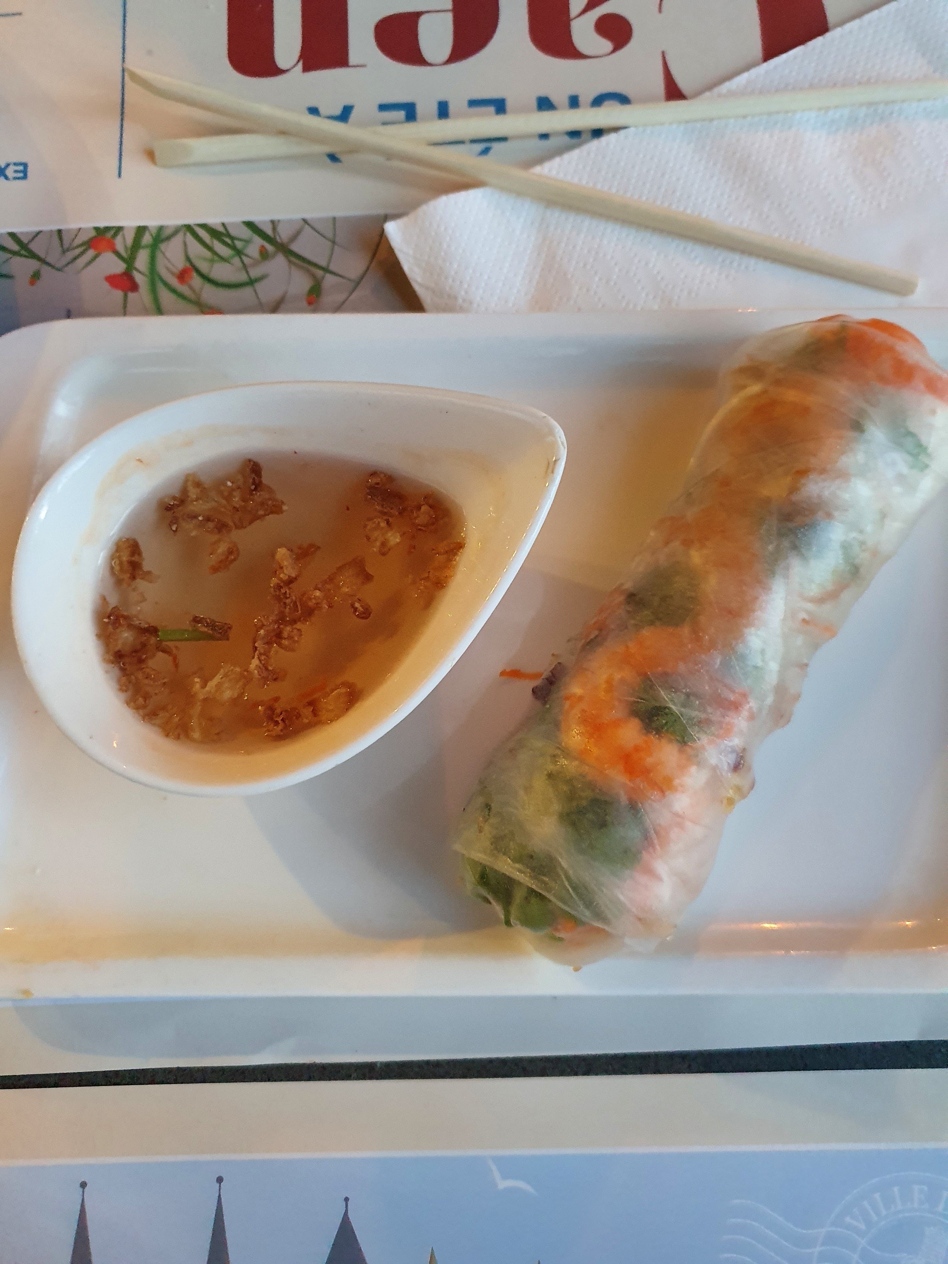 J’ai commandé rouleau de printemps crevettes il est large comme une canette … ensuite le bœuf aux oignons n’avais aucune sauce .. super sec ! de même pour les nouilles nature très sèches .. je suis un peut déçut car je n’avais jamais manger la bas auparavant.. mon avis est mitigé.. j’ai connue mieux.
