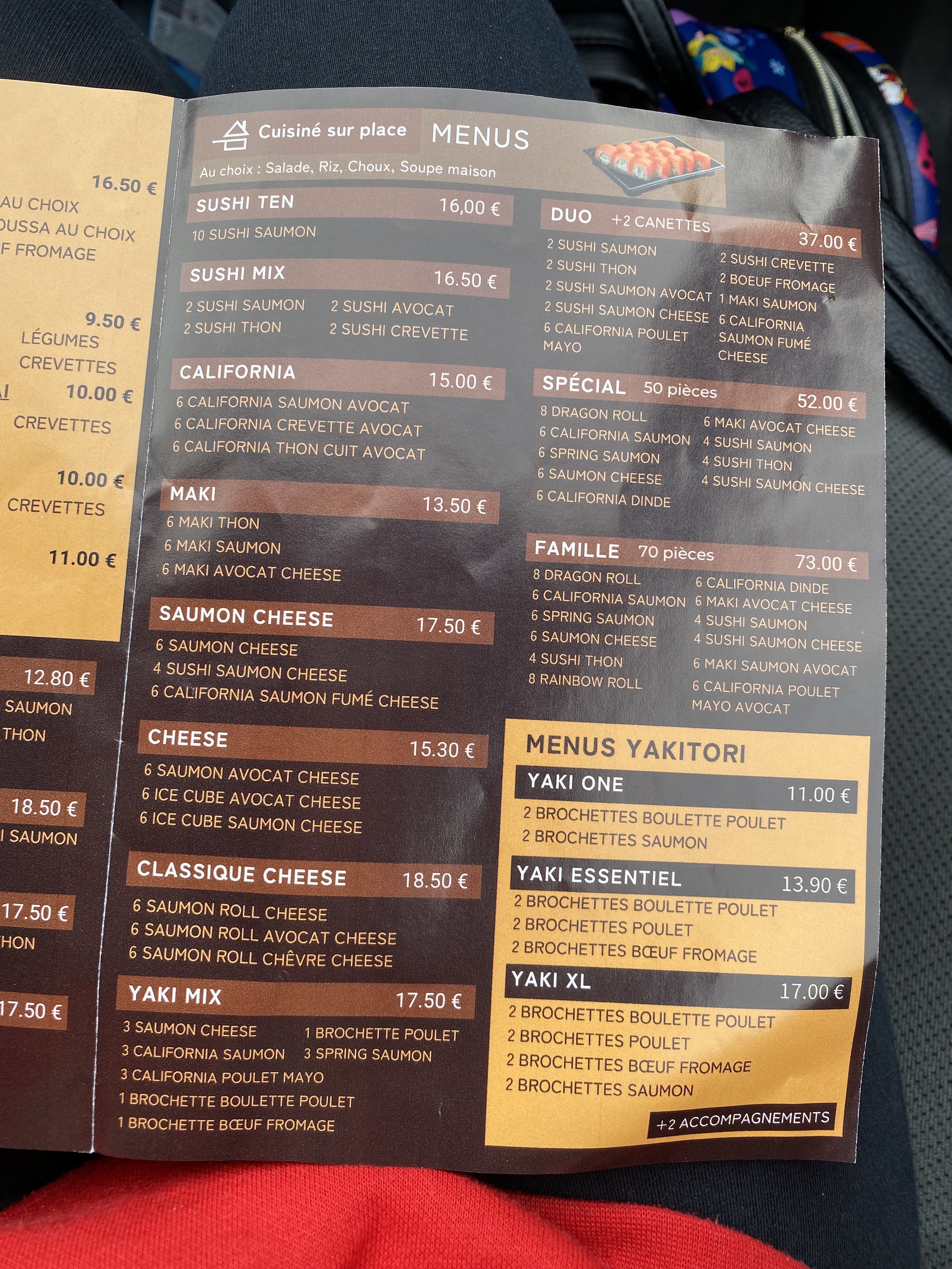 Commande sur uber eat , attente assez longue pour la livraison , et il manquait à la commande la soupe miso et la salade de choux ,pas de sauces , pas de baguettes et de serviette , très déçu .on ne reviendra pas .