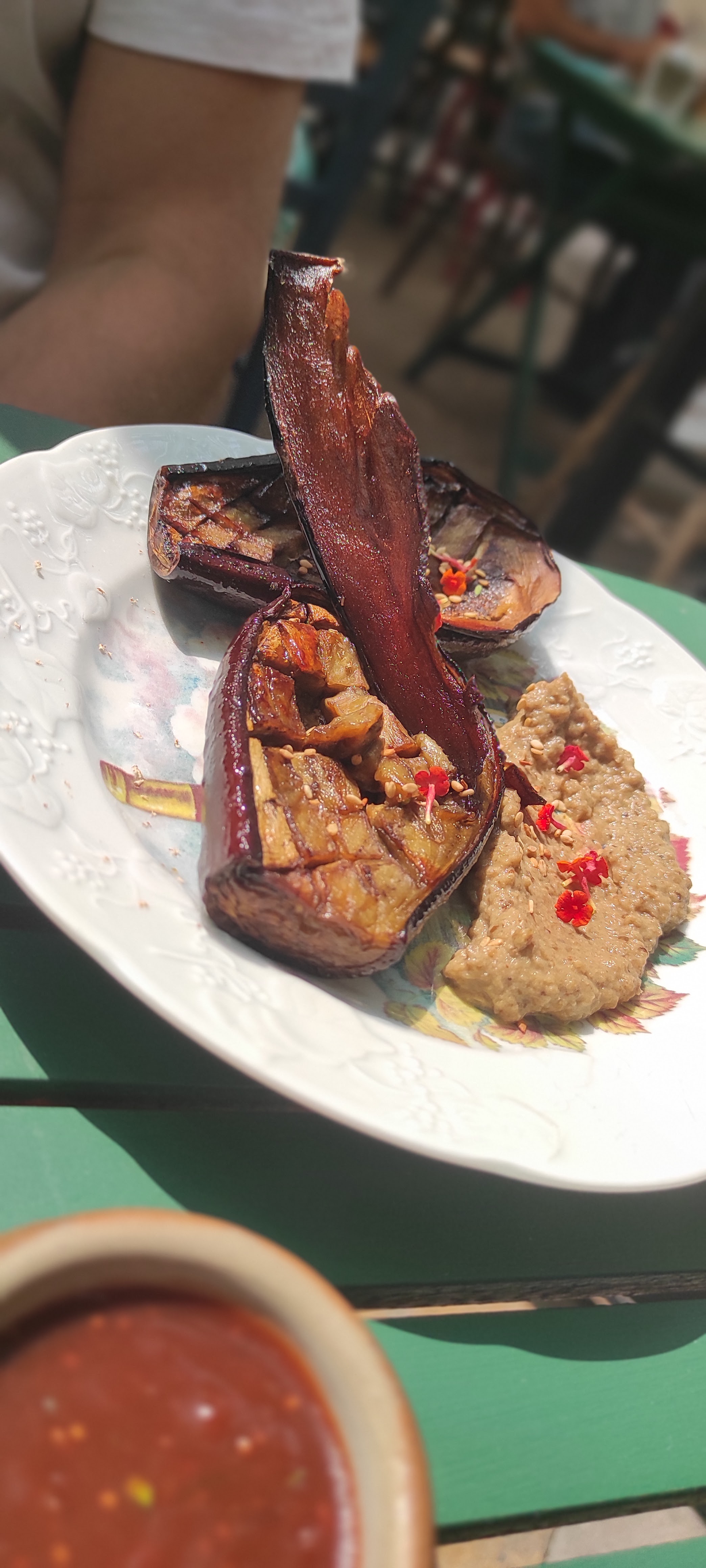 OK oui ils ont un concept différent mais bon €9 pour un bout oignon et 2 slices de courgettes frit c est pousser le bouchon. En plus de ça l agneau n était pas cuit proprment. A en croire les 2 tables autour de nous les gens n étaient pas vraiment impressionnés A éviter à tout pris.☹️