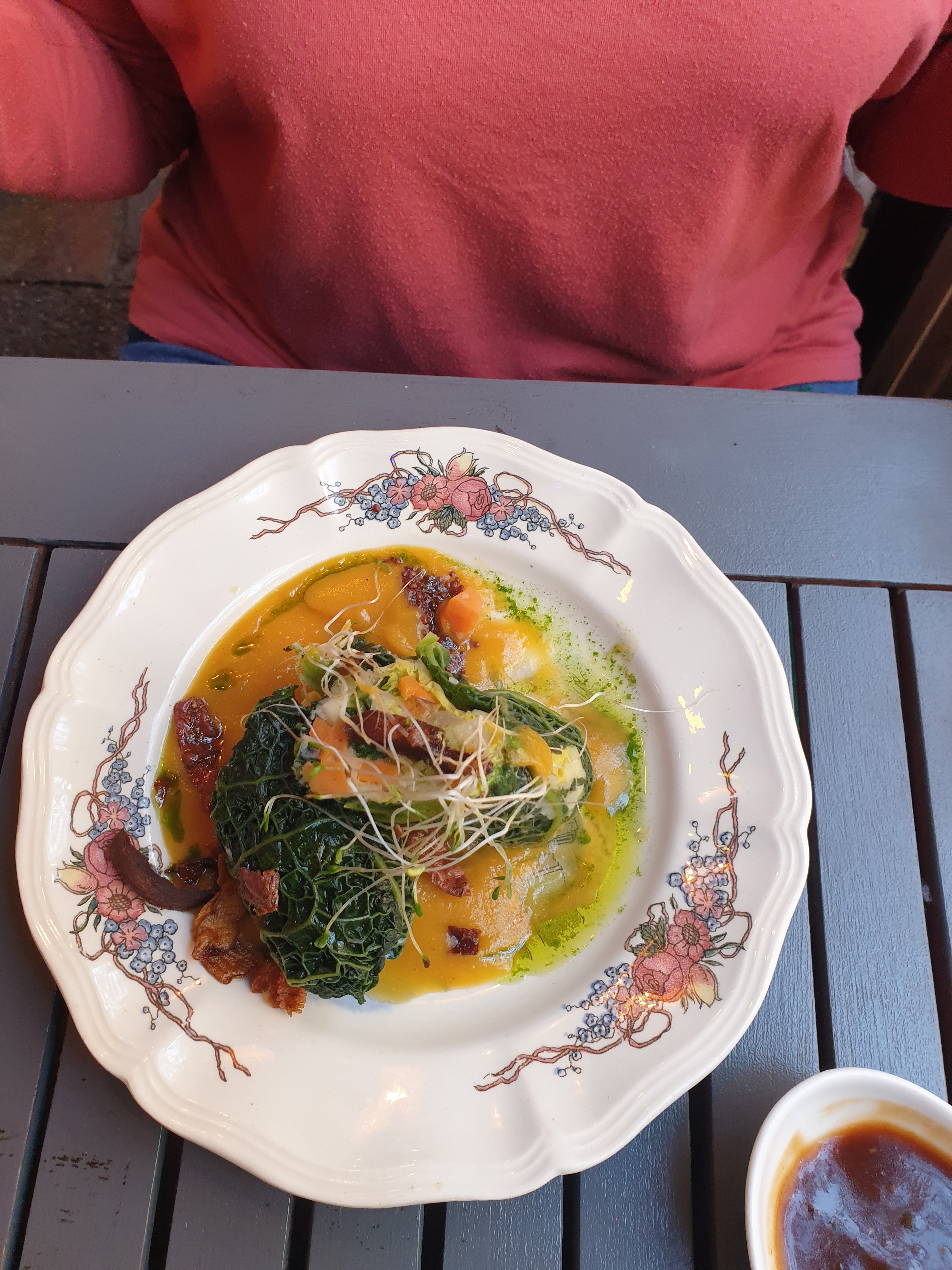 Les plats sont faits maison et goûteux. Mais, il y a un grand mais : je suis ressortie avec la faim. Les quantités ne sont vraiment copieuses. Nous étions une grande tablée et nous avons tous eu le même ressenti de pas assez. L'accompagnement était soit courges rôties ou poireaux braisés. Pour le 1er, c'était 3 demi tranches de butternut et pour le second, c'était 4 petits morceaux de poireaux braisés. Au final, l'addition est chère et je n'y reviendrai pas.