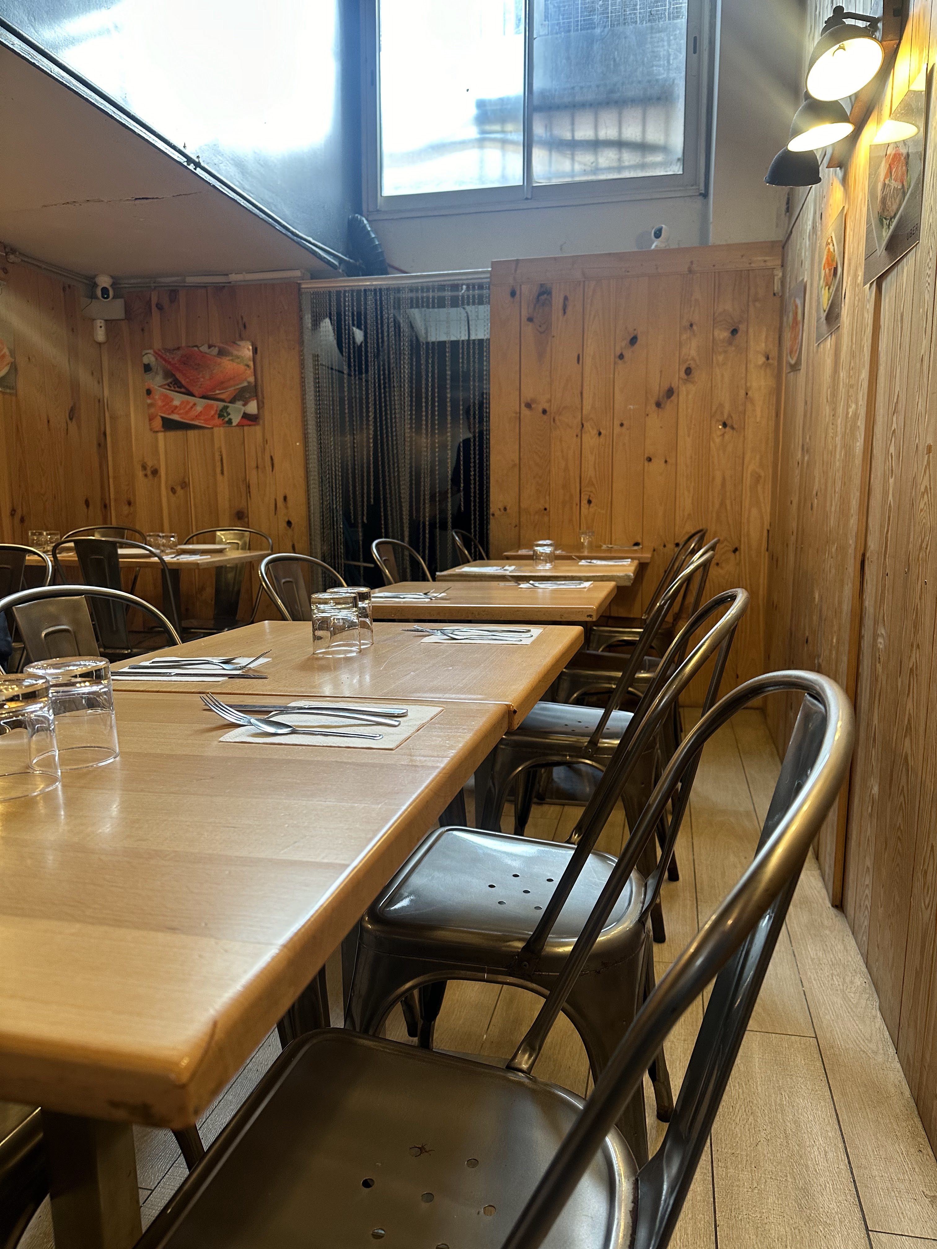 Je vous conseille ce restaurant qui ne paie pas de mine de l'extérieur. Très bon choix de saumons. Le patron est en.plus très sympathique. Le personnel est bien reactif. Seul bémol, en sortant du restaurant, vous etes parfois aussi fumé que le saumon. Enfin le plat de pâtes à 5 euros n'est pas toujours très gouteux.