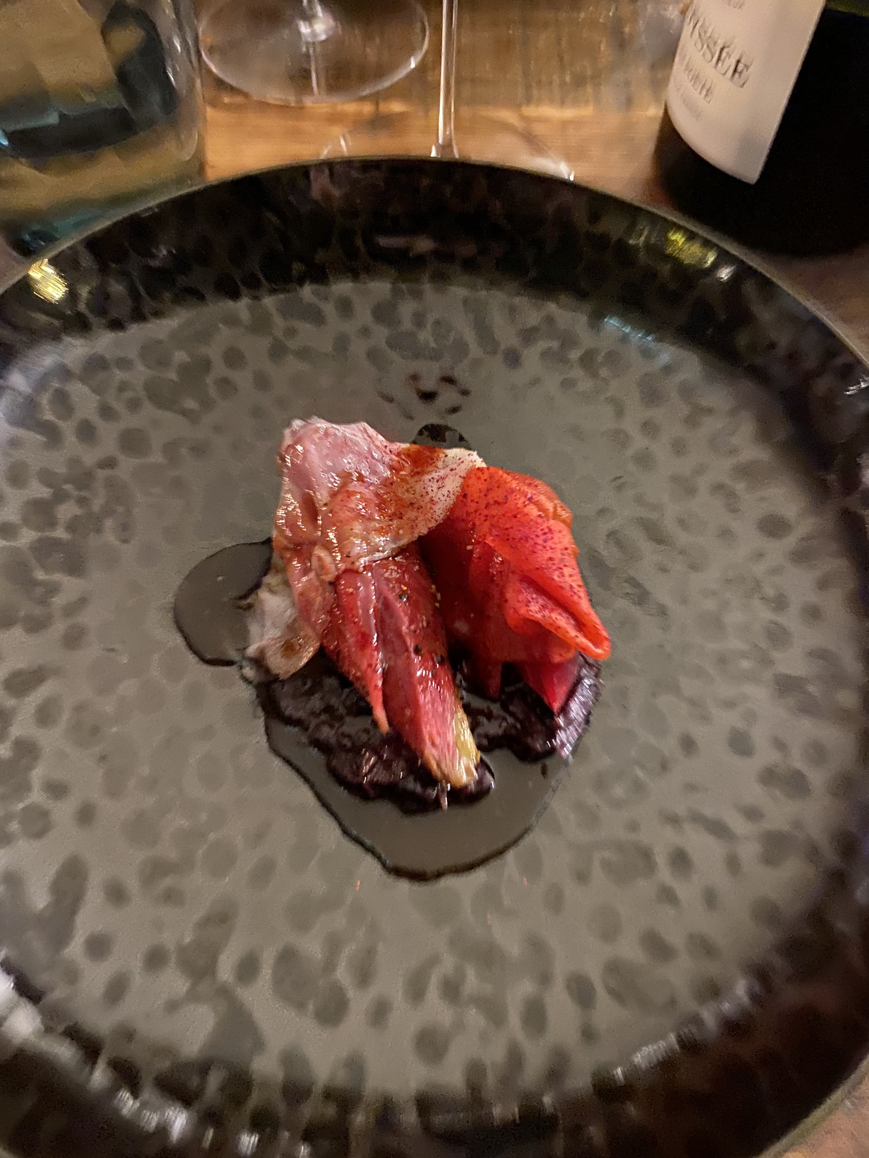 Quel moment!!! Merci encore à Loic et son équipe pour nous avoir fait voyager entre texture et saveur avec toujours leur sens de recevoir. La justesse des cuissons et l’originalité des plats nous ont enchanté et l’accord mets et vin était parfait ( clin d’œil à mademoiselle wine)