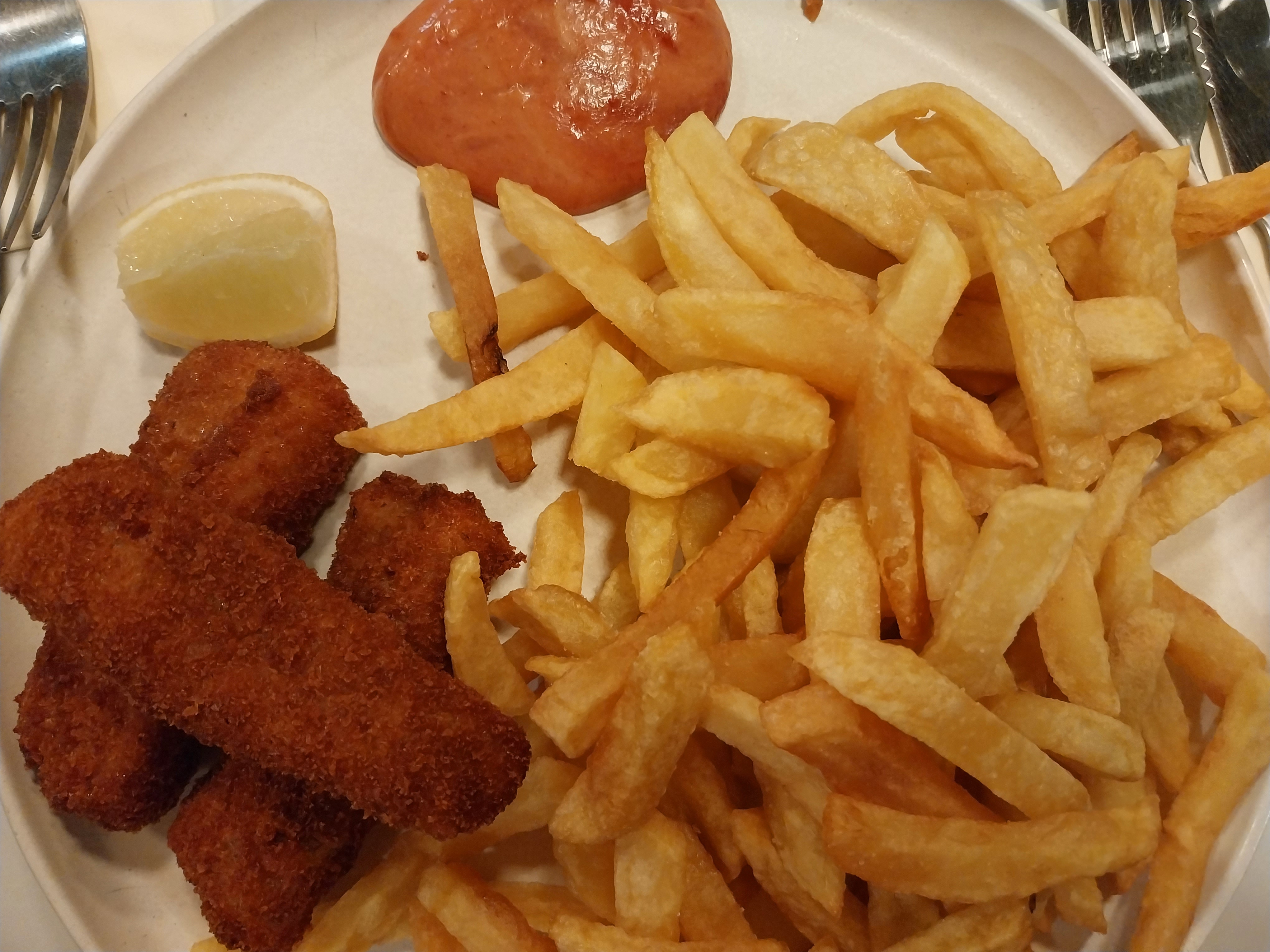 Excellent service, très poli et patient envers les débutants français, 3 poissons du jour, avec frites étaient très bons et un hamburger au bœuf, on m'a demandé pour la première fois comment je le voulais cuit, moyennement rare, peut dire que le burger est bien haché. Livraison très rapide de la nourriture, j'ai aimé l'ambiance et la décoration, je parie que ça peut raconter quelques histoires. Je reviens pour Rissotti, consultez le tableau des promotions à l'intérieur comme des choses supplémentaires qui ne figurent pas au menu.