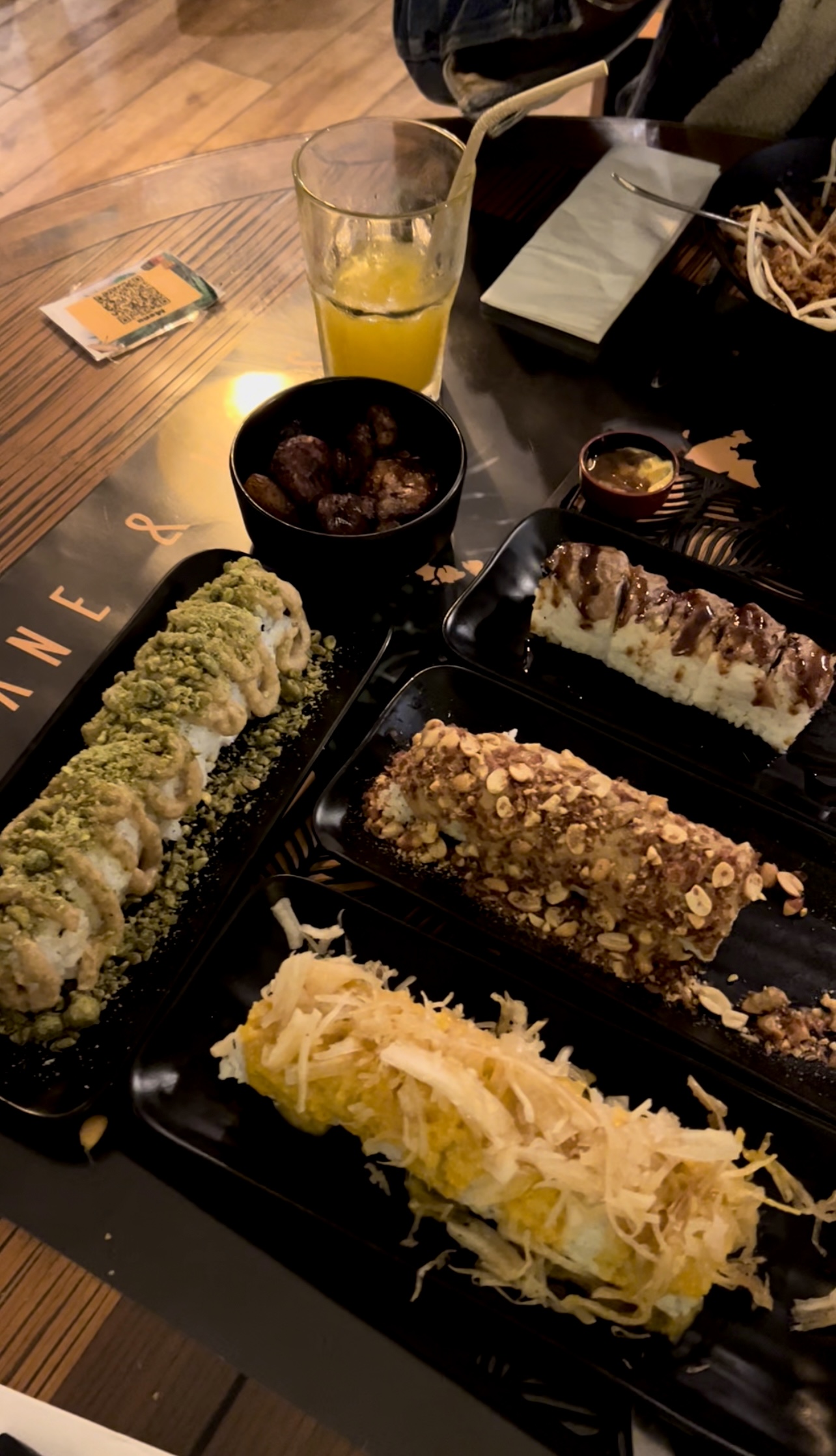 Je recommande fortement les rolls ! Les mélanges sortent de l’ordinaire et sont très harmonieux en bouche. Une nouvelle expérience de sushis ;) Les desserts étaient pas mal mais plus basiques.