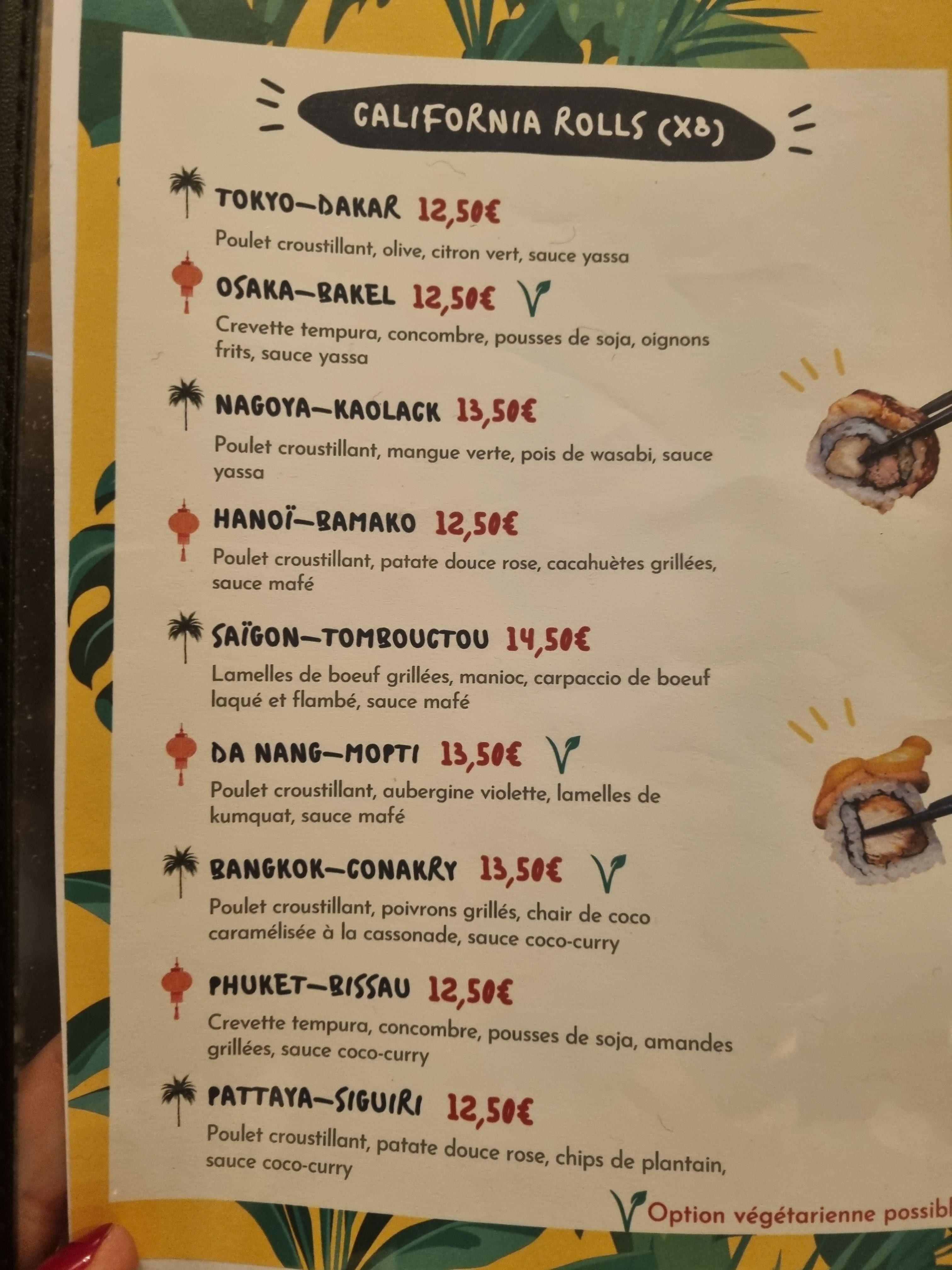 Superbe découverte !! Une cuisine fusion qui nous amène entre l’Asie et l’Afrique. Des portions généreuse et un accueil au top. Coup de cœur pour les california rolls nagoya kaolack