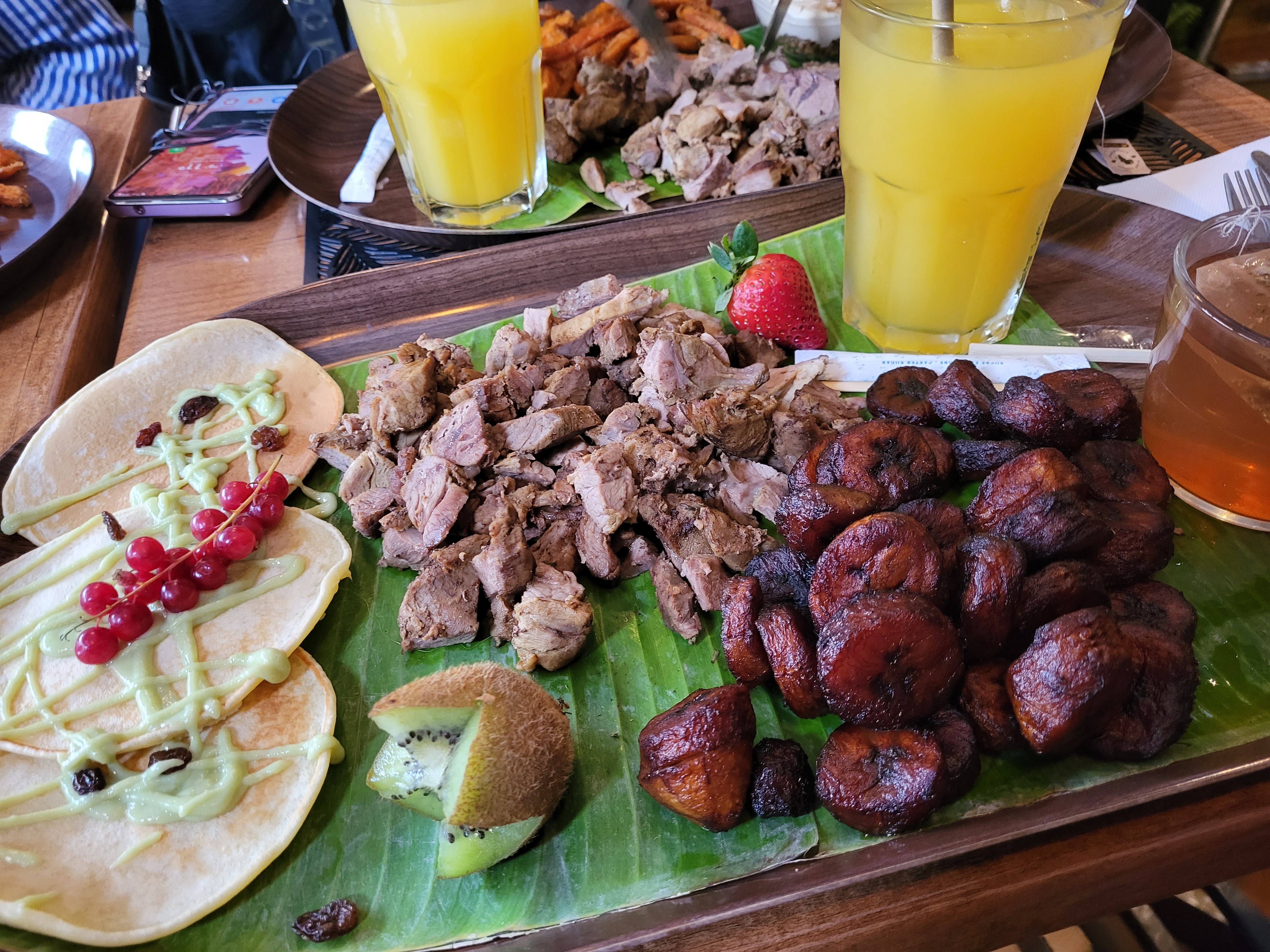 Jolie expérience et de belles découvertes. Les bananes délicieuses et les plats très bons. Desserts originaux, coup de cœur pour le cookie ! Dommage que nous ayons dû quitter le restaurant à 23 h en voyant le serveur nettoyer la salle et couper la musique.