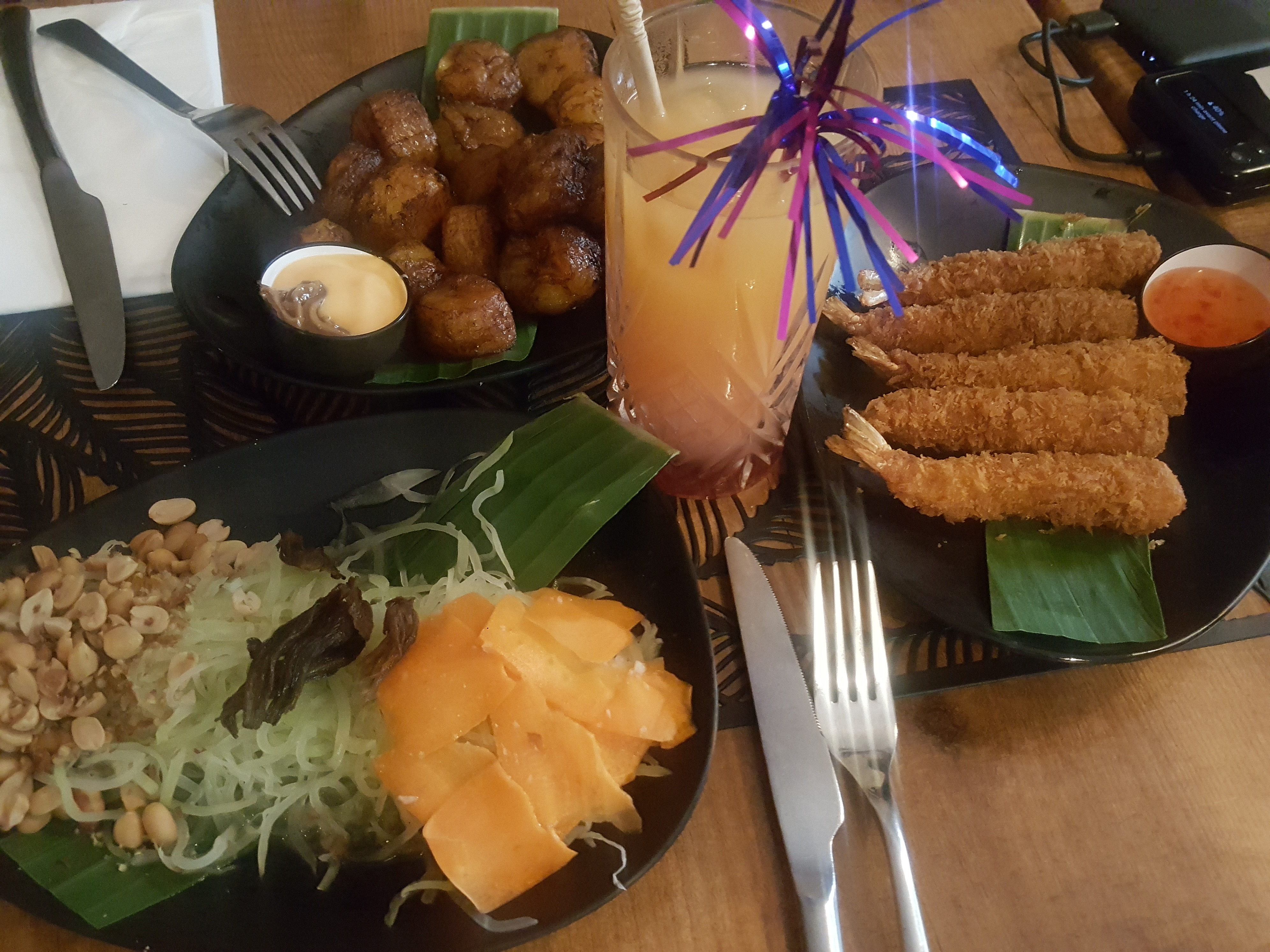 Cuisine surprenante entre Asie et Afrique. La salade de papaye n'était pas assez assaisonnée à notre goût mais le reste était vraiment original. Les makis sauce maffé sont super bons bien qu'assez bourratifs. Nous n'avions plus de place pour les desserts. Ce fut une découverte originale que nous ne regrettons pas