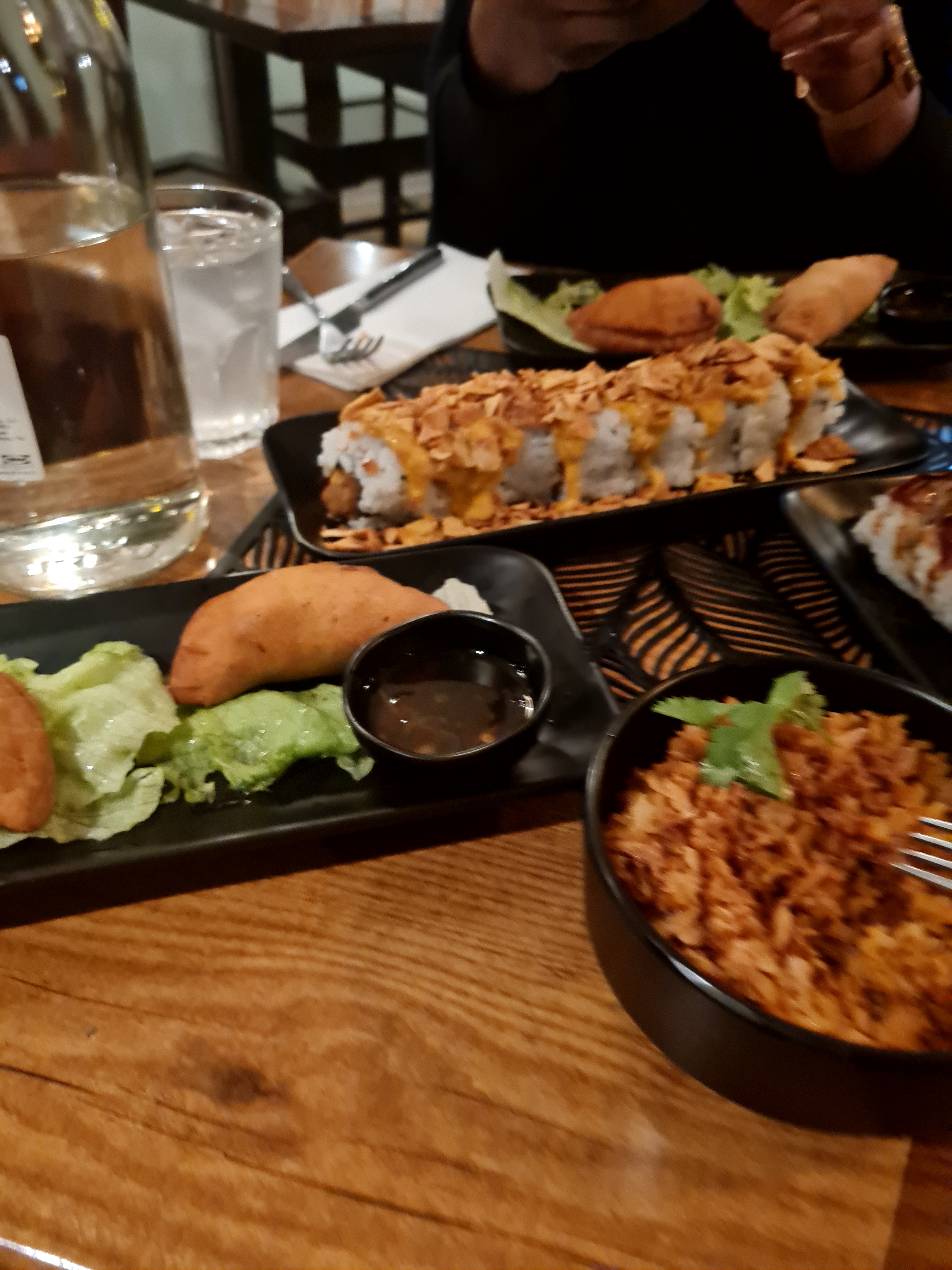 Ne prenez pas que des sushis. Ils sont très bons mais un peu secs. Quantités copieuses. En revanche le service à revoir. Il faisait froid dans le restaurant et à minuit pile ils nous ont expédiés. Pendant la soirée plusieurs éléments de décoration sont tombés par terre.