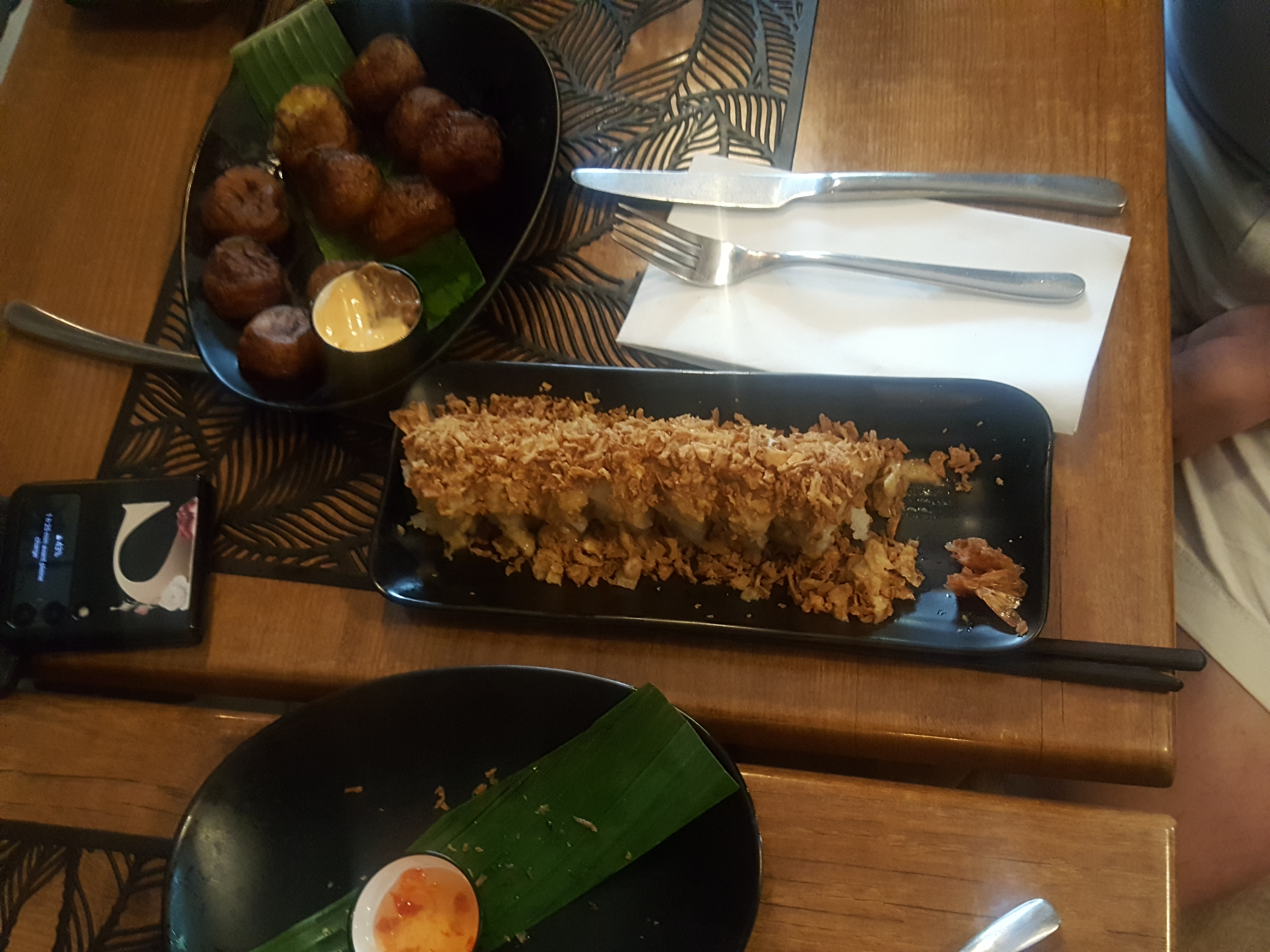 Magnifique moi qui recherche toujours a goûter de nouvelles saveur au niveau gustatif la je n’est pas été déçu j’ai kiffé ma life j’ai goûté les pastels bœuf très étonnant ça ne ressemble pas à nos pastel ( Afrique de l’Ouest) car la pâte est fine mais la garniture est très bonne ! C’était trop bon, ensuite j’ai pris des maki Hanoï Bamako (des maki poulet sauce arachide avec des cacahuètes )et des aloco ce qui m’as étonné c’est que on sentait grave bien le goût de la banane or que encore une fois chez nous (Afrique de l’Ouest) le goût de la banane on sens pas trop chepas comment expliquer mais c’était bon avec la sauce mayonnaise et arachide et un mojito j’ai trop bien manger merci au chef c’était délicieux je recommande x100000