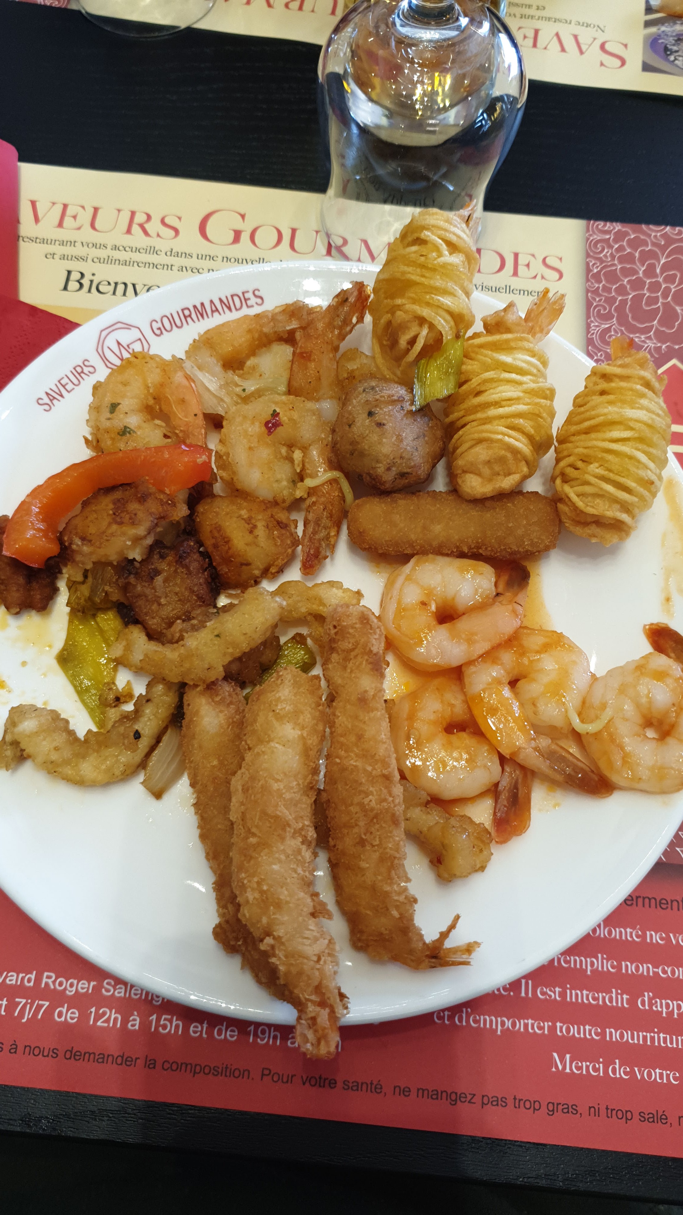 A fuir !!!! Tout est froid! saveur gourmandes faudrait changer de nom c'est tellement réchauffé que c'est SANS saveurs! Aucun goût, élastique ou caoutchouc au choix! Les desserts c'est encore pire tout est congelé les beignets étaient durs comme du béton immangeables pareil pour les petits gâteaux. Heureusement que je n'ai pas testé les fruits de mer! Il vaut mieux avoir moins de choix et que ce soit bon et chaud ! Les serveuses sont en plus antipathiques. 1ère et dernière fois pour moi...