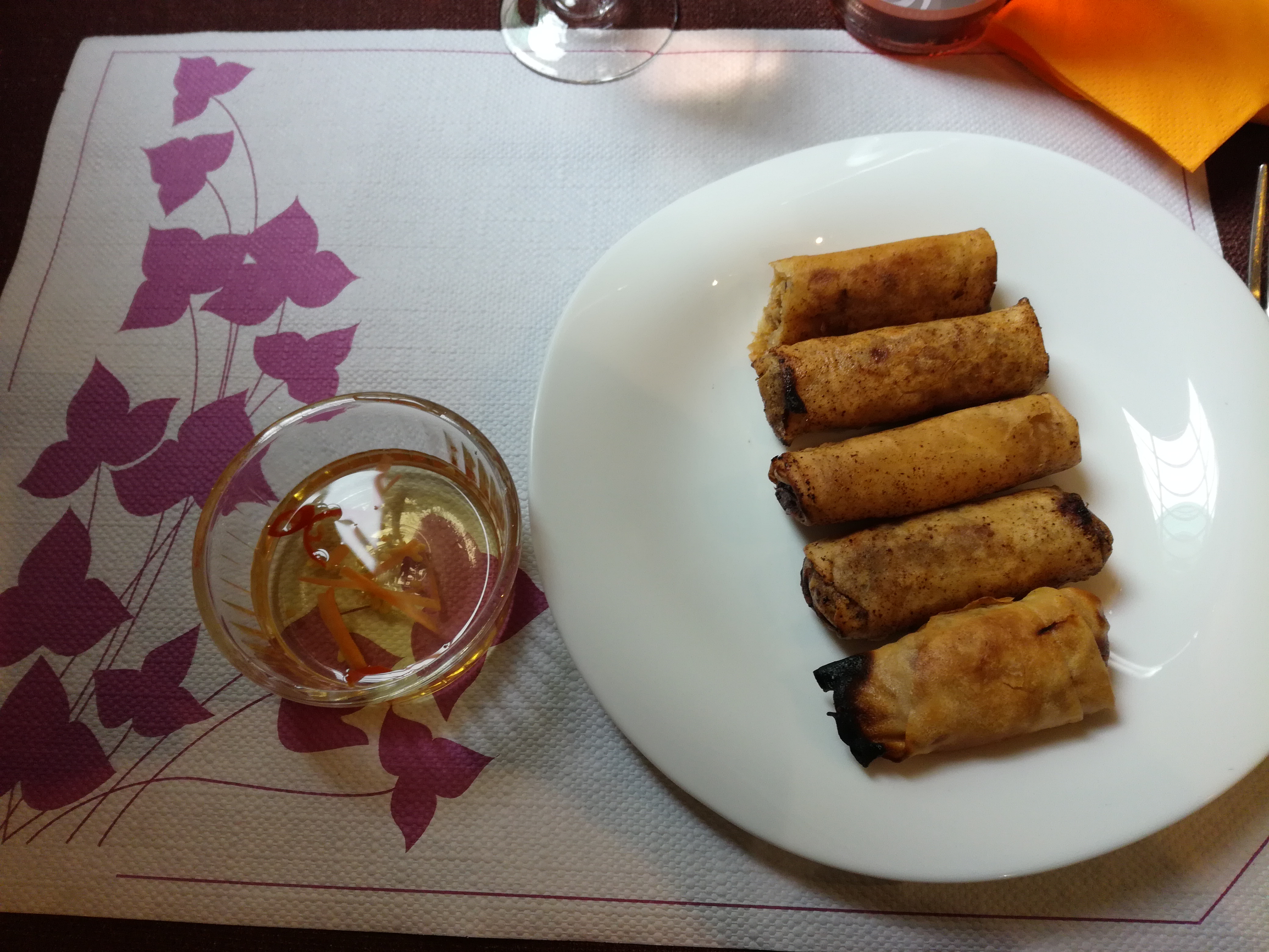 Commande à emportée composée de nems et de nouilles sautées. L'ensemble est plutôt très bon mais les nems étaient un peu cramés par endroit. Je recommande tout de même.