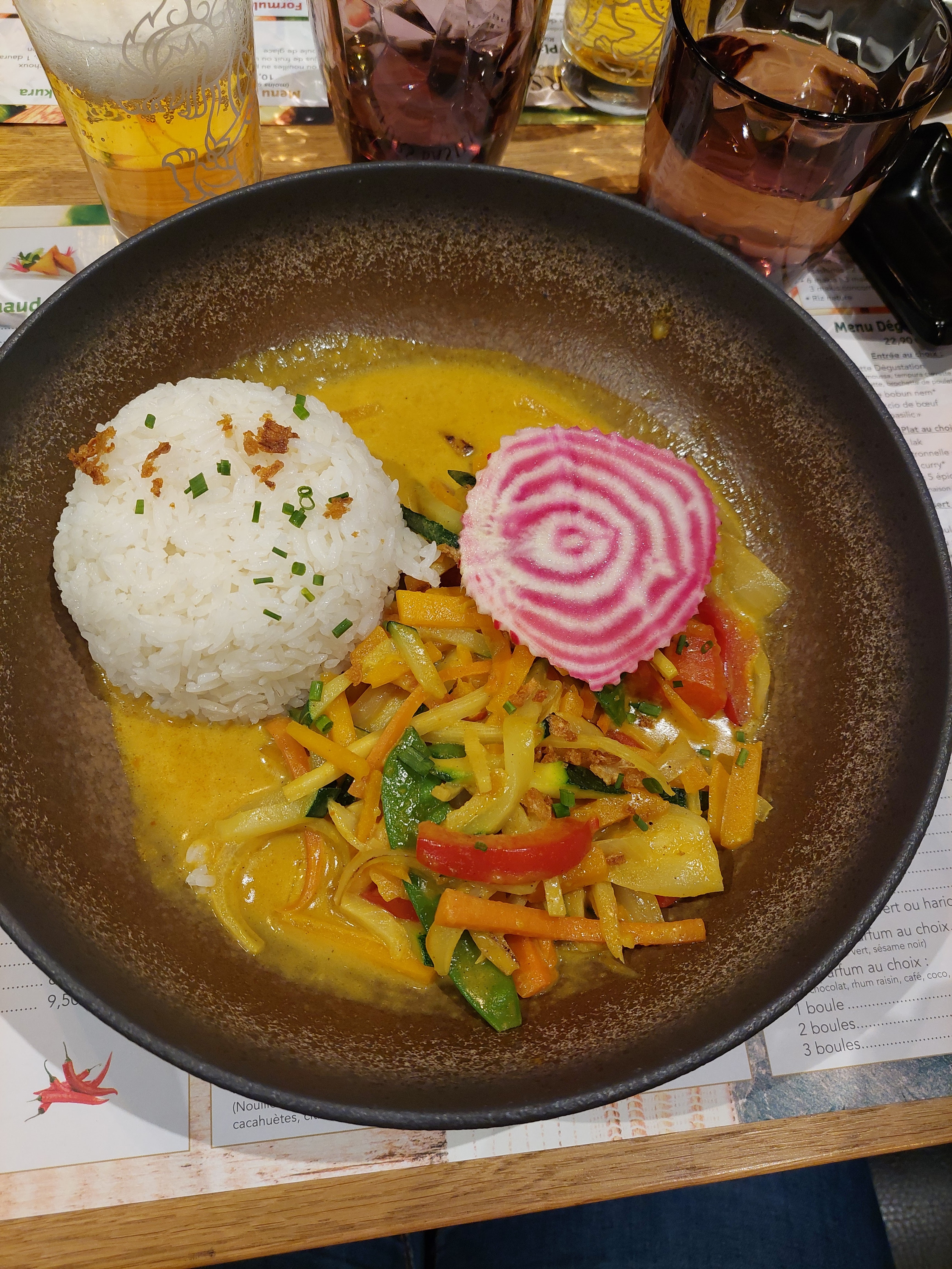 Plats sur place et à emporter très goûteux (produits frais...) avec des versions possibles végétariennes ;) Accueil très agréable, disponibilité. A ne pas manquer le délicieux riz-mangue en dessert. Merci :)