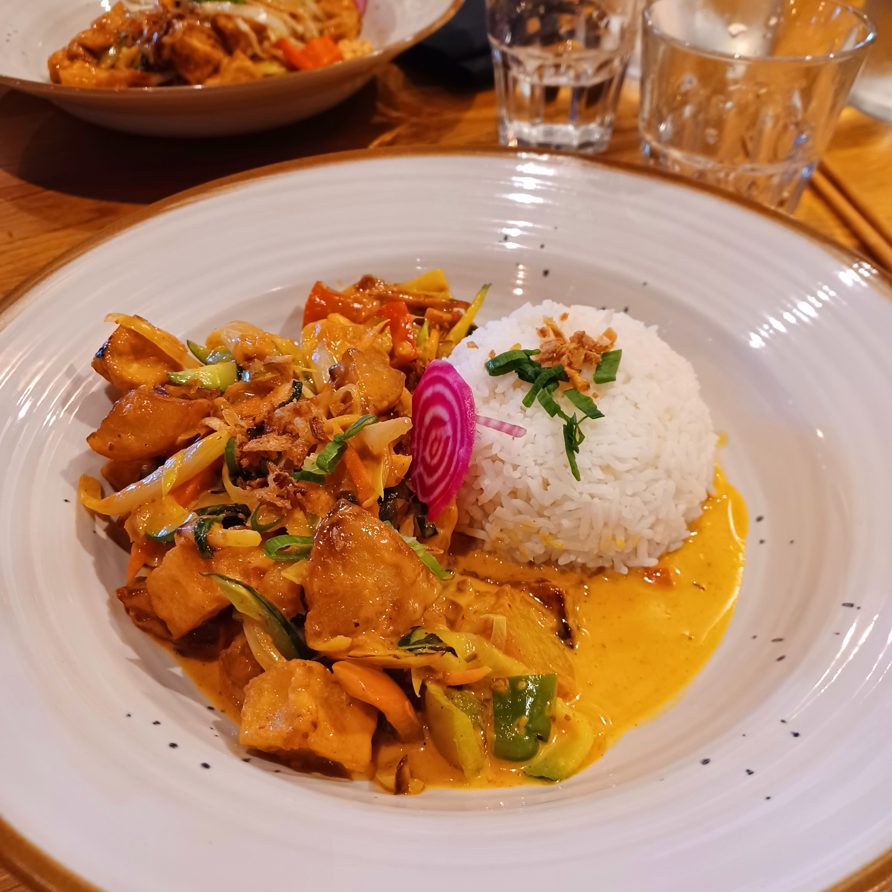 Trop trop bon on dirait q on voyage à Thaïlande.... le goût c'est vraiment exotique! La présentation d assiettes est magnifique ( surtout l ananas) En plus c'est super accessible qualité prix genial ! Je conseille à 100%