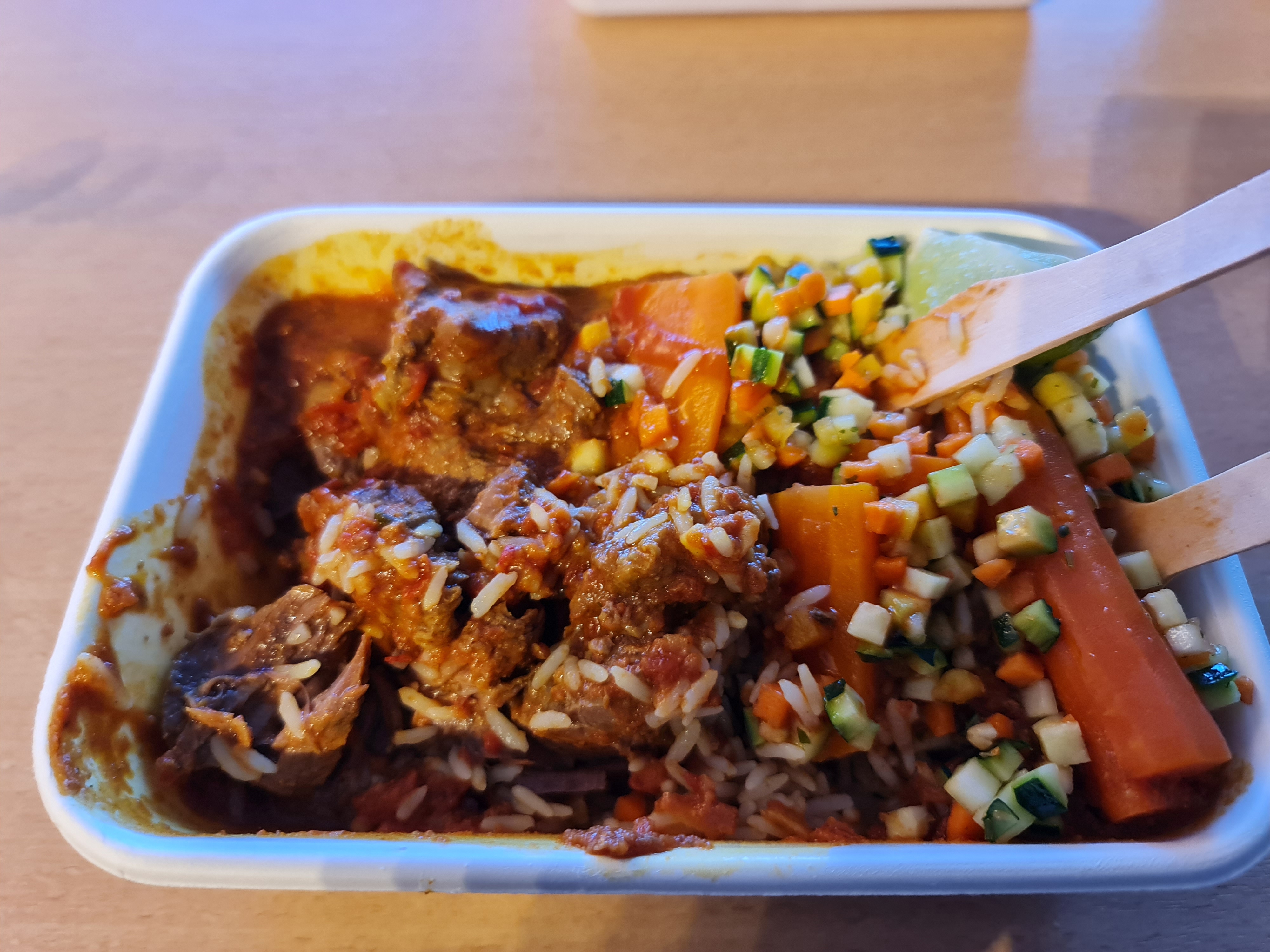 Cuisine du monde, proposé dans un petit camion. Vente à emporté ou a consommé sur place ( il y a quelques tables) Les produits sont frais, la carte se renouvelle toute les semaines. Emilie nous sert toujours avec attention et bonne humeur. Une bonne adresse
