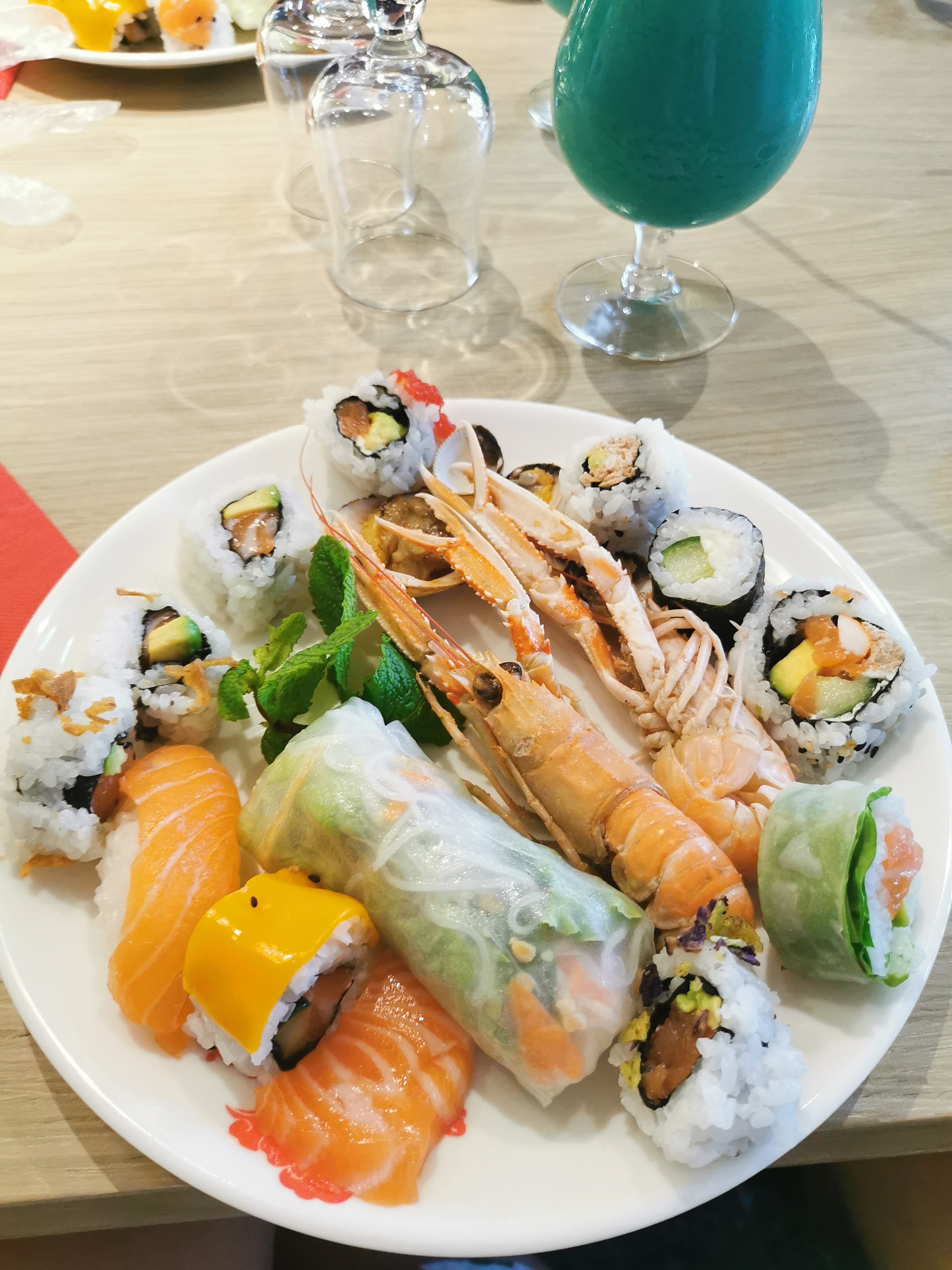 Il y a du choix dan ce buffet à volonté. Entrées frites ou crudités, sushis, wok, Petit plus pour le thé et le café compris dans le repas. Accueil sympa. Mais qualité standard, du décongelé quoi. En tout cas c'est bien pratique quand on a très faim.