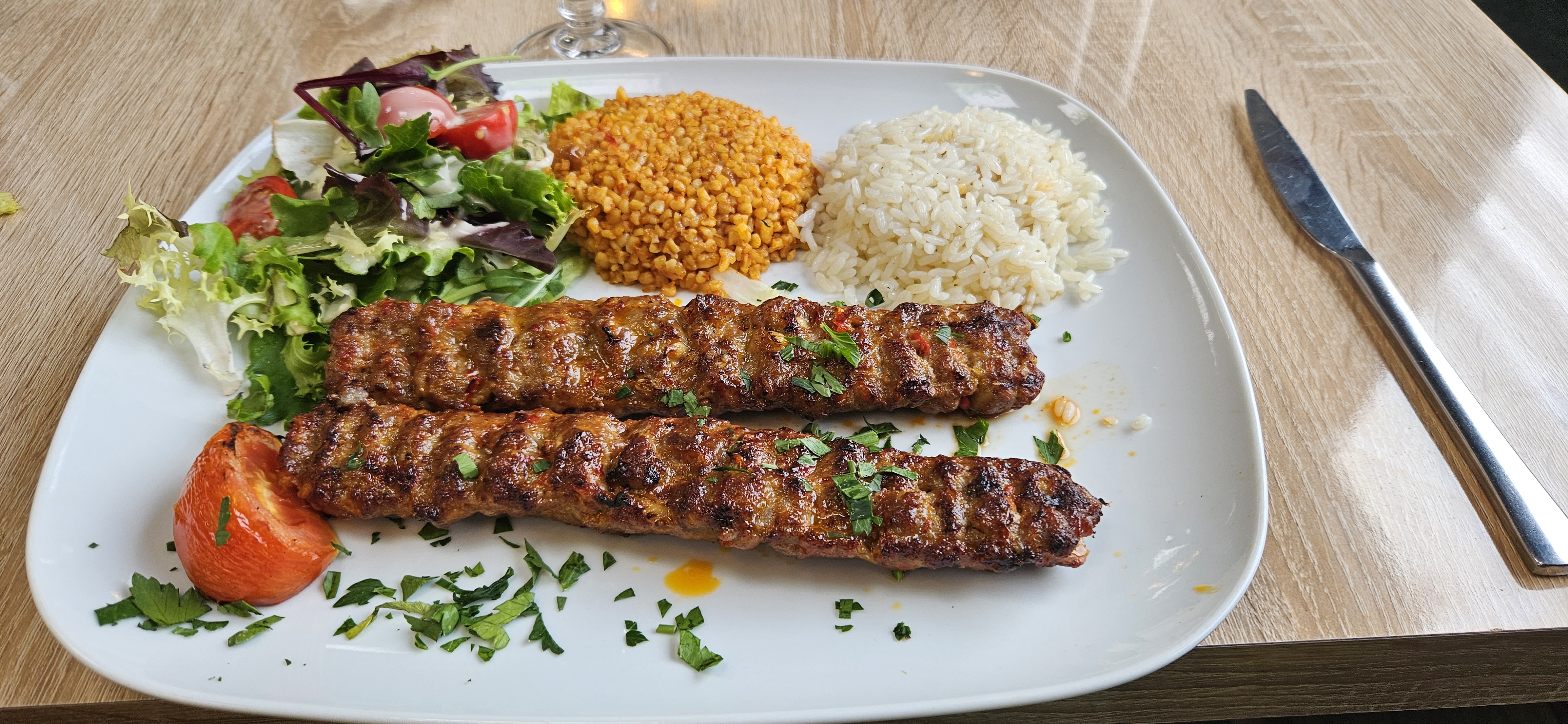 Le restaurant est très bien décoré, clair, spacieux, confortable, d'une propreté irréprochable. L'accueil est souriant et convivial. Les plats sont copieux et joliment présentés , nous avons apprécié nos brochettes d'agneau, cuisson à point, viande de qualité. Bravo à toute l'équipe, nous reviendrons avec grand plaisir !