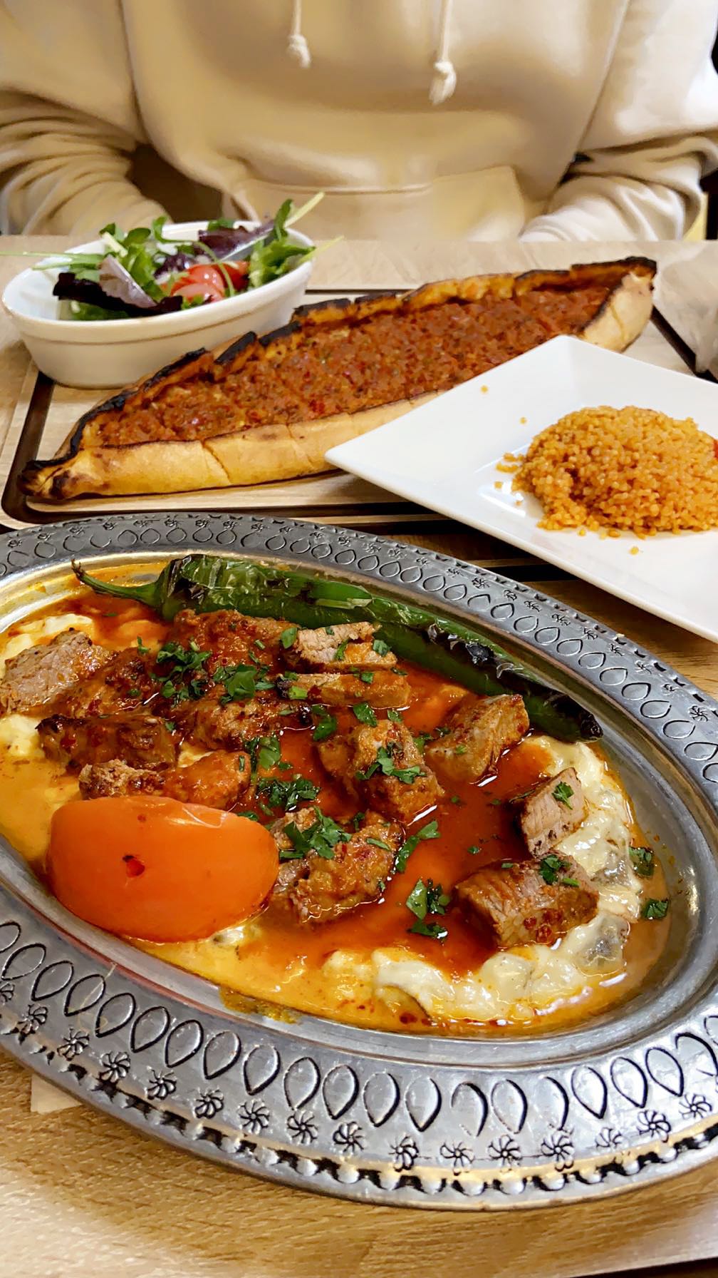 Restaurant très beau la décoration est au top. Les serveurs très disponible très serviables et très gentil . Et on garde la meilleur pour la fin la cuisine, elle juste incroyable c'est la première fois que je mange de la cuisine turque aussi bonne .
