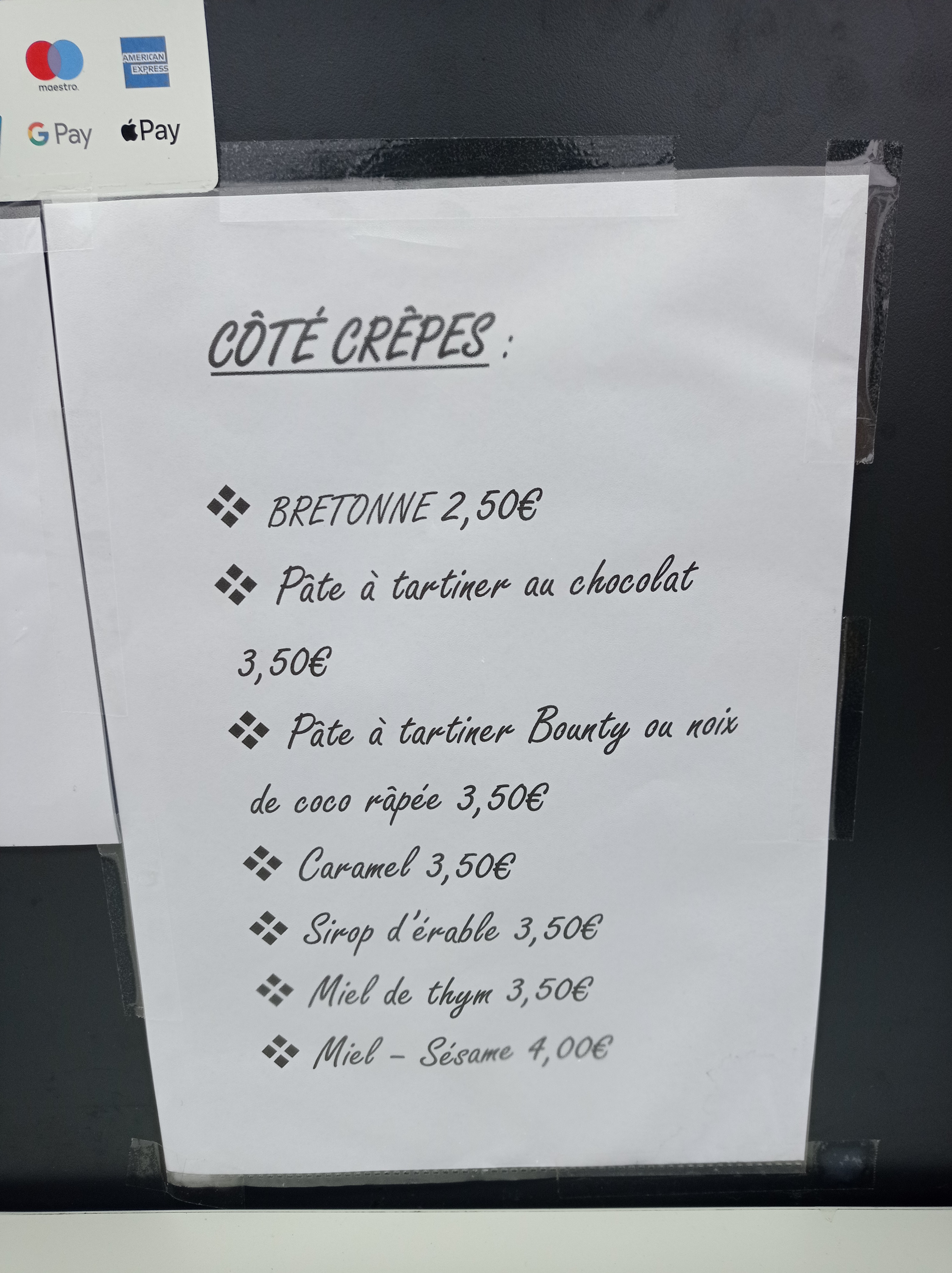 Une gaufre salé tout simplement DÉLICIEUSE ! Les crêpes sucrée, wahou ! Et le monsieur très très gentil ! Je recommande, et je reviendrai dès que j’en aurai l’occasion c’est certain 🤩