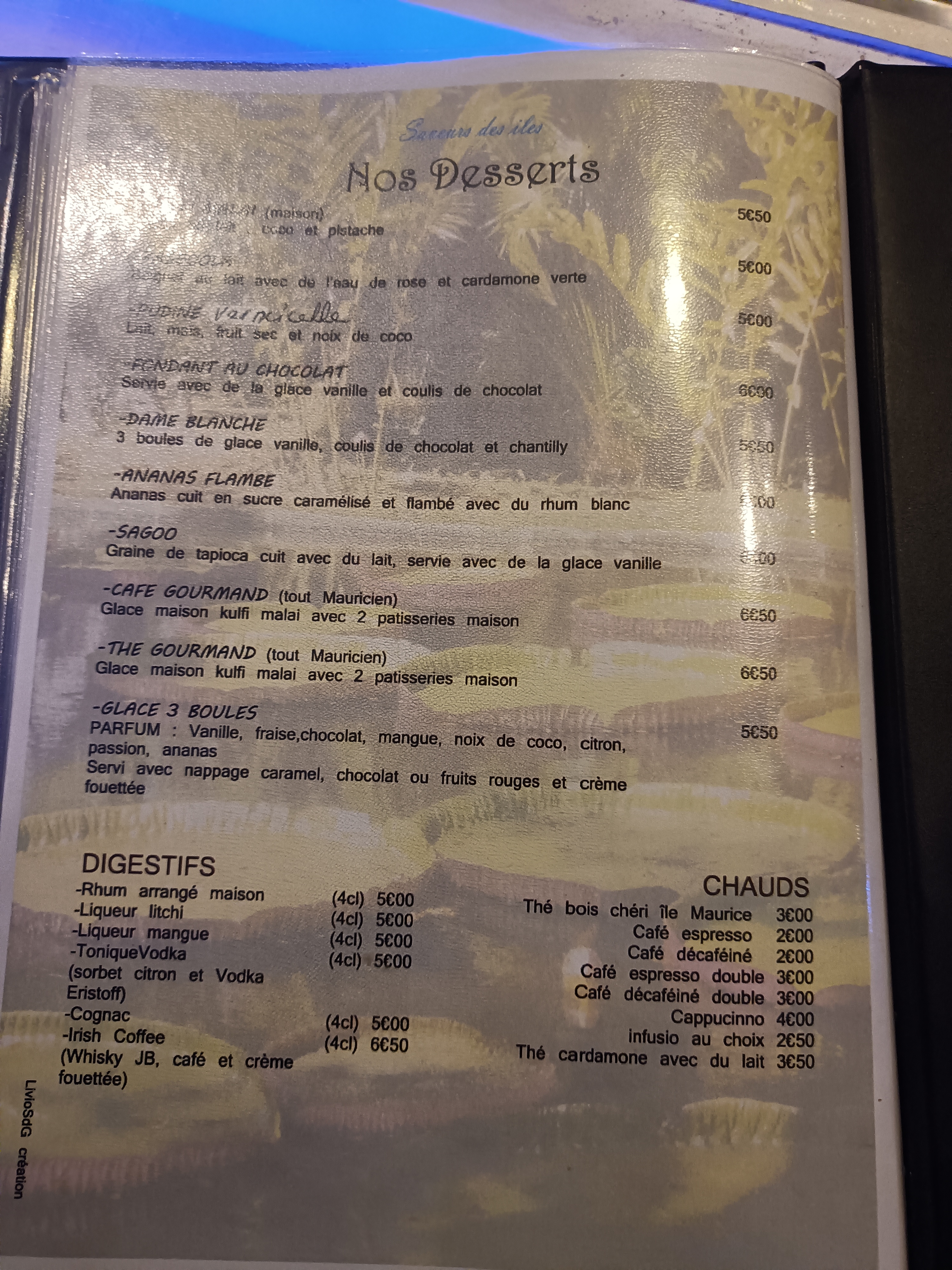 Cela faisait plusieurs semaines que j’avais envie de plonger dans les saveurs mauriciennes, installé rue Gambetta à Lille. Le restaurant est propre et agréable, un peu moins de chance avec le service : notre serveur n’a pas su répondre aux moindres de nos questions, même les plus basiques (Qu’est-ce que la sauce créole ? Qu’est un Rasgoola ou un Kulfi Malai ?) pour seule réponse nous avons un charmant sourire niait. Que dire des plats, nous avons apprécié les hors-d’oeuvre malgré un prix un peu cher selon nous, mais déçu déçu déçu par les desserts sans goût, ni fraicheur. Bref j’étais impatient de découvrir cette adresse aux saveurs des iles, j’ai compris en sortant quand la responsable nous a proposé de découvrir leur autre restaurant dans Lille celui-là indien que l’authenticité ne viendrait pas de leur part.