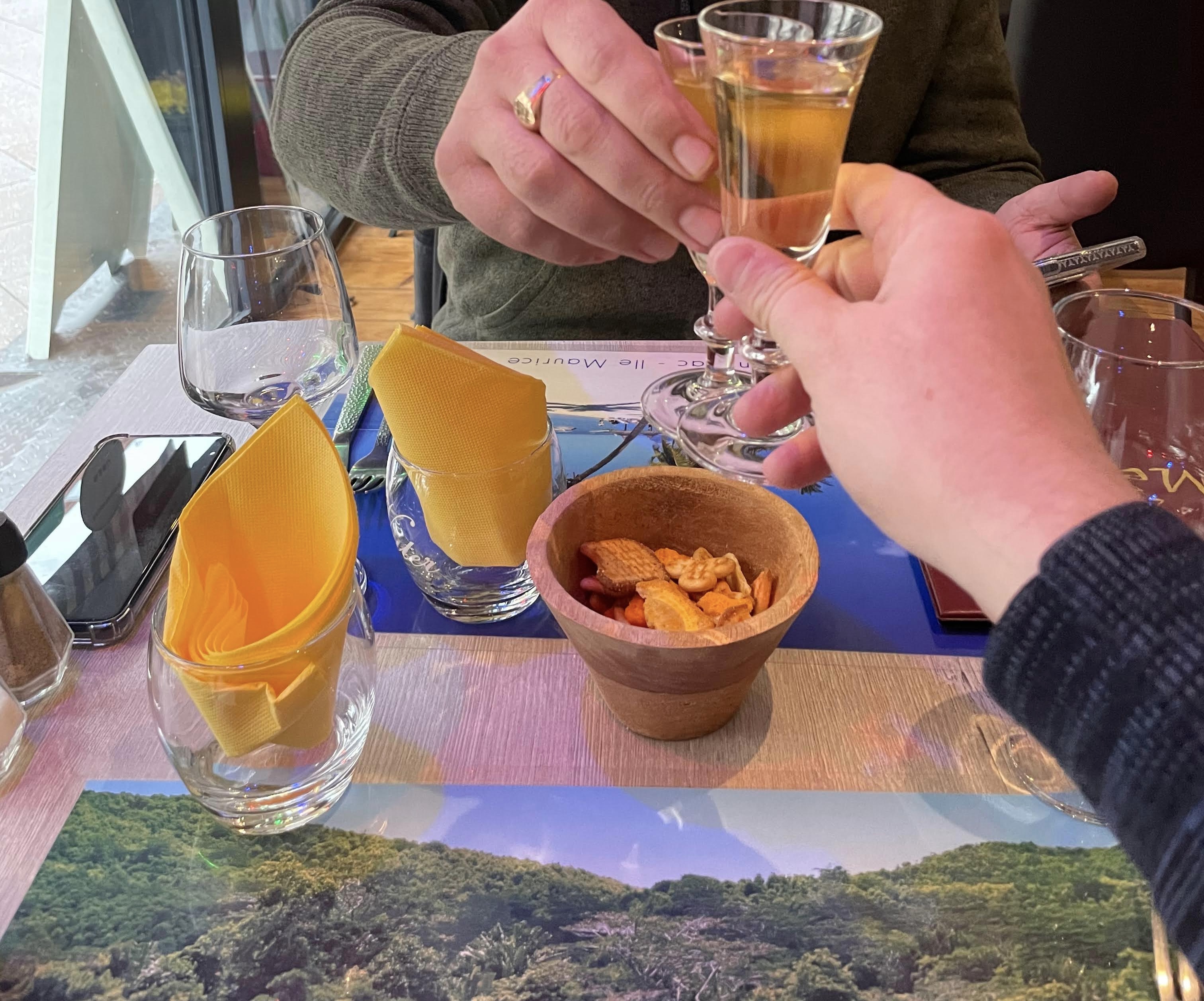 Il pleuvait dehors mais je me suis retrouvé à l'île Maurice en passant à table. Très bon voyage