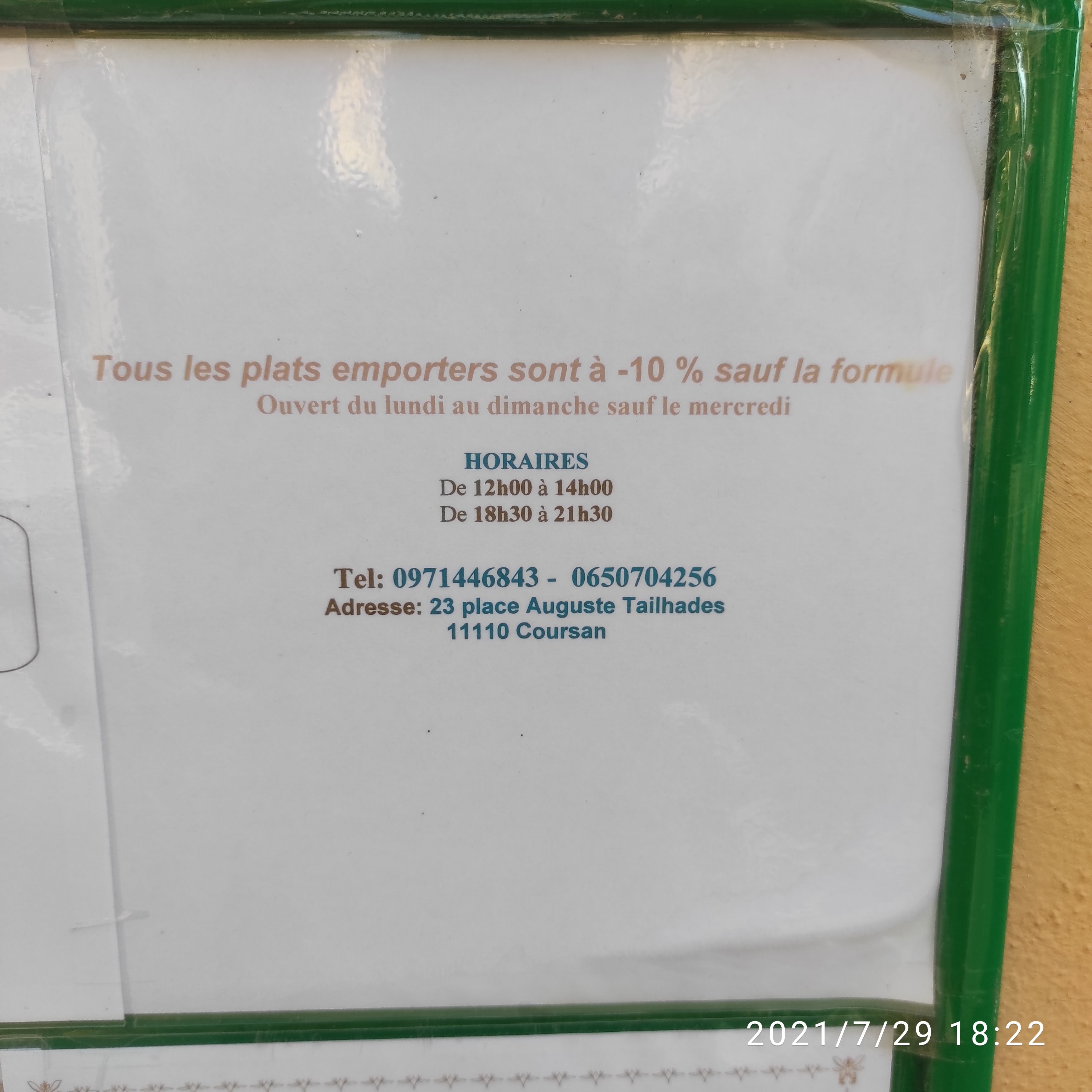 C'est un excellent resto. Les plats sont servis en portions généreuses et les saveurs sont au rendez vous. Même à emporter on vous sert généreusement. Le choix des plats est assez large également. L'emplacement du resto en fait un cadre assez coquet, au cœur du village de coursan, pour apprécier un bon repas. Le personnel est agréable et souriant. Vraiment une très bonne adresse.