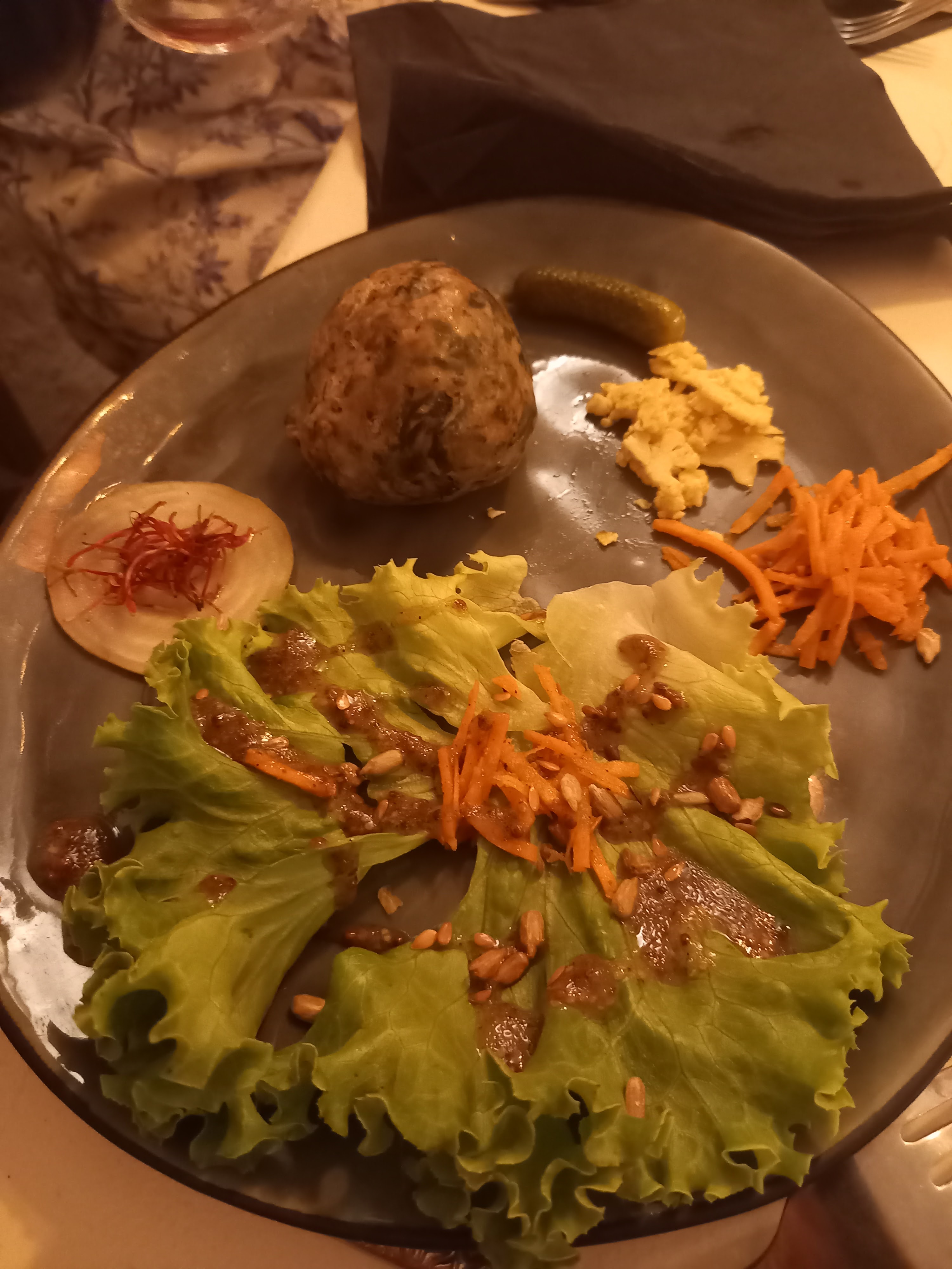 Tout petit restaurant très chaleureux dans une cave voûtée de la vieille ville. Des mets bien travaillés avec un très bon goût dans les épices et les parfums. Des plats faits maison dans des assiettes bien garnies et agréablement présentées. Des menus à 22 ou 27€ début 2018, quoi méritent le déplacement.