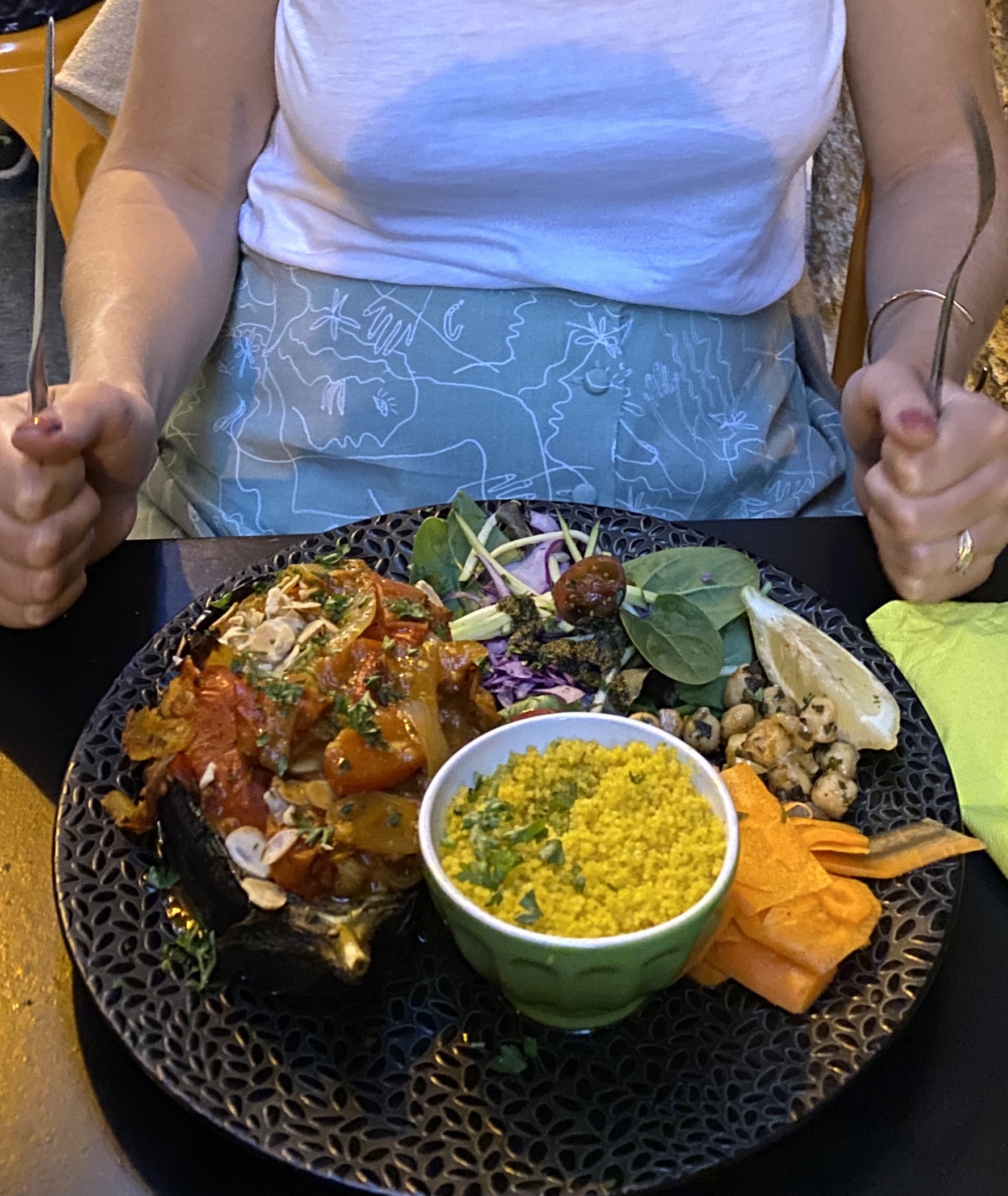 Nous avons fait un excellent repas aux Saveurs du sud : cuisine goûteuse, surprenante et généreuse. La part belle aux légumes et épices, du gravlax aux herbes à la dorade royale grillée juste à point, assortie d'un savoureux tian de légumes provencaux. Ma compagne s'est régalée d'une aubergine shéhérazade fondante et parfumée. En dessert, un clafoutis reine-claude gourmand sans peser sur l'estomac. Service souriant et attentionné, dans une petite rue calme et charmante. Bref, une cuisine faussement simple, saine et délicieuse, pour une addition plus que raisonnable !