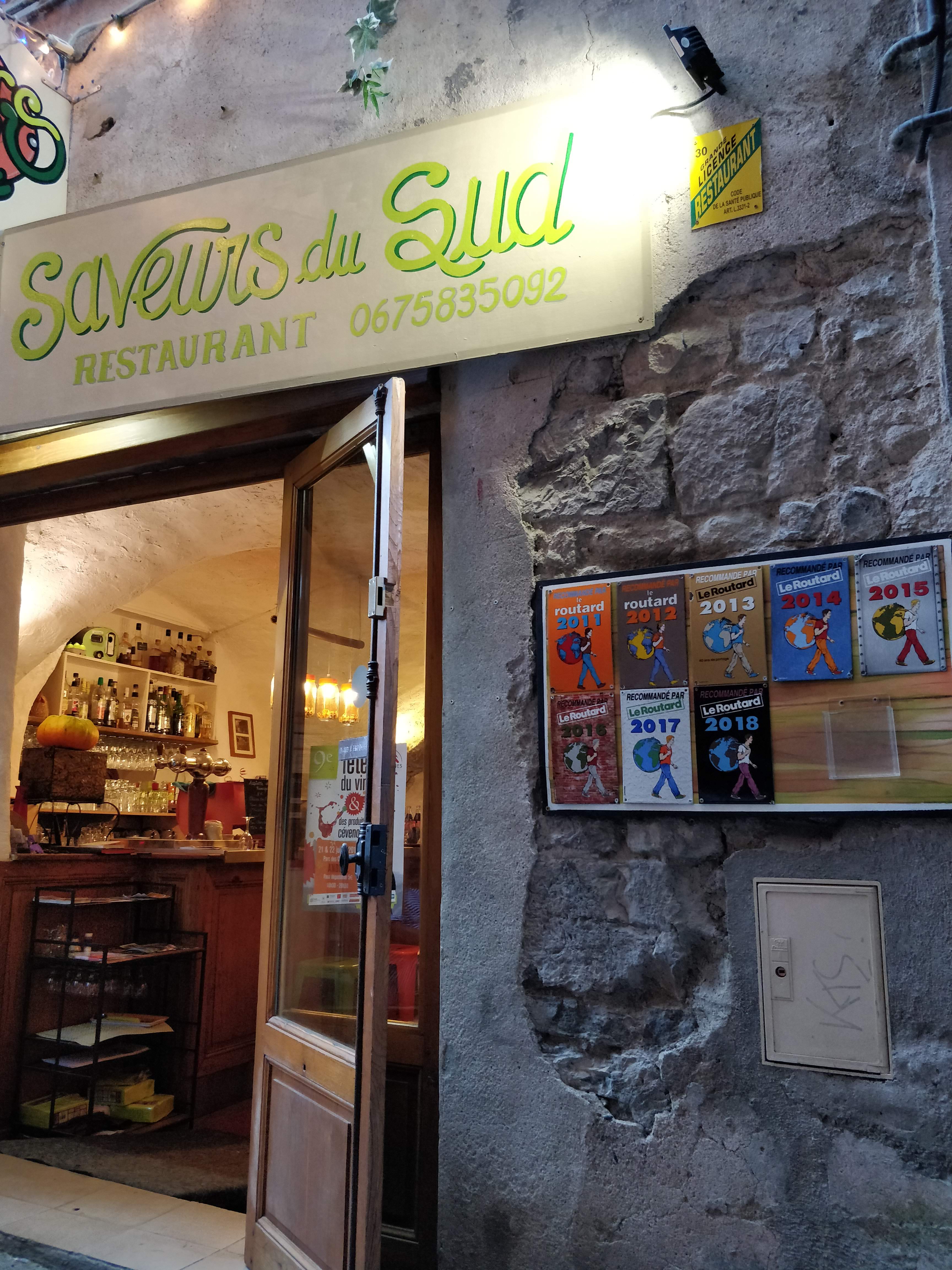 De passage à Anduze, au détour des ruelles nous sommes passés devant saveurs du sud et après avoir vu qq autres autres cartes de restaurant nous avons arrêté notre choix sur celui ci.Bon ben on va être clair s ils ont le routard depuis 2011 c est pas par hasard !!! Nous nous sommes régalés ! Saveurs originales, assaisonnement au top, plats copieux, service impeccable et super agréable. Les températures de ce mois de mai nous ont permis de dîner dans le patio très agréable lui aussi. Je recommande sans hésiter. A un peu plus d une heure de chez nous ils risquent nous revoir