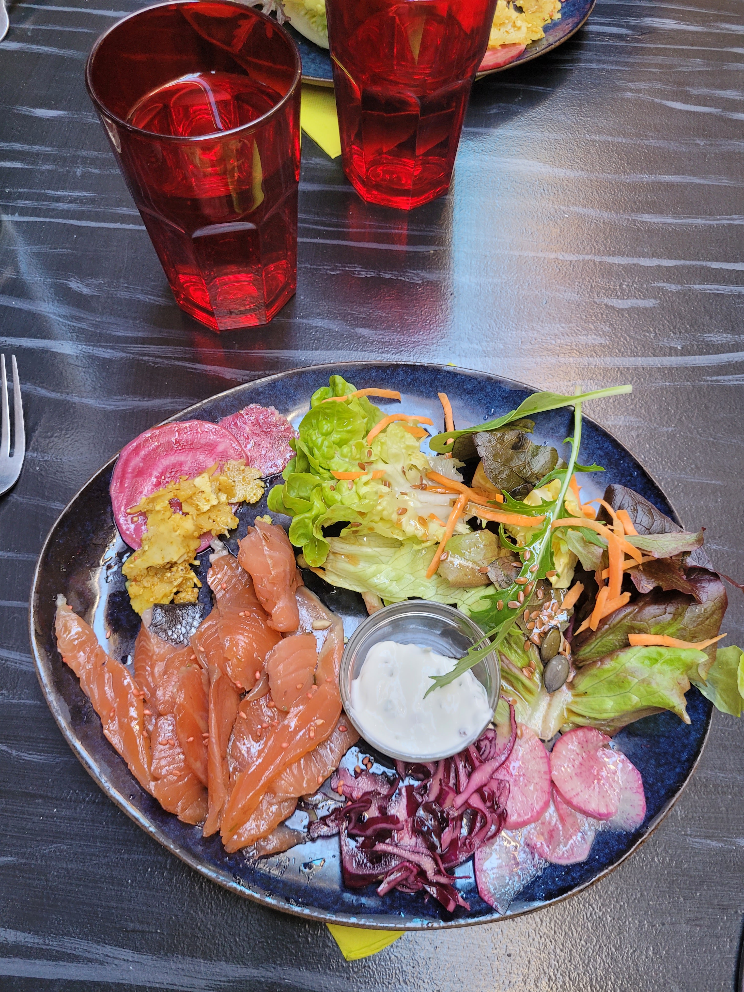 Un peu déçu, l entrée correcte (gravelax de saumon) mais le plat était un peu fade et le poisson pas assez cuit. Un pichet de vin qui n est jamais arrivé. Cependant mention spéciale pour le dessert a la patate douce qui était succulent. Par contre, tout les produits sont de qualité et faits maison.