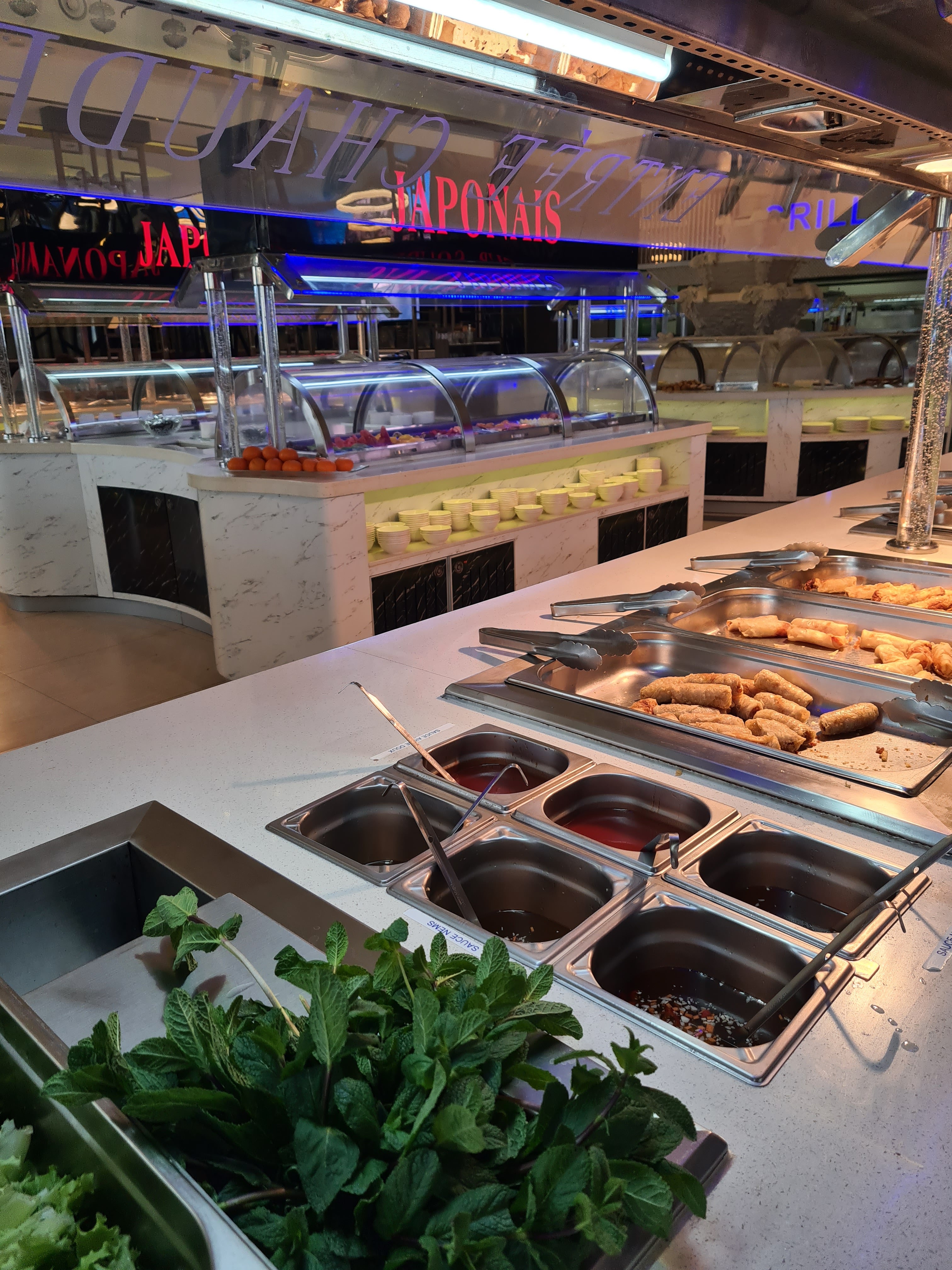 bonjour, établissement très chaleureux, la nourriture et très bonne et de bonne qualité avec un large buffet en passant par les fruit de mers buffet légume entre chaude wok et grill parfait je le recommande très franchement vous pouvez y allez les yeux ferme et surtout l'equipe et au top