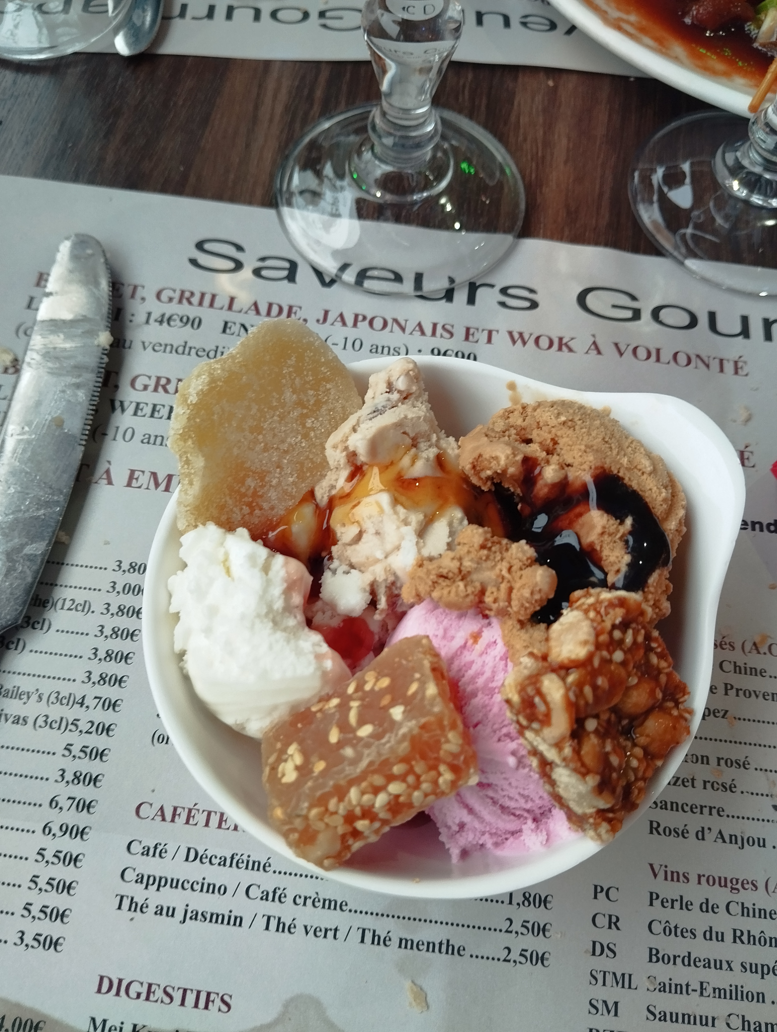 Un plus grand choix dans le buffet de plat principal, de nouveaux desserts ont été rajoutés, service dans un joli présentoir. Je recommande +++ Les points négatifs : menu enfants 10 euros pour une petite de 2 ans qui ne mange pas beaucoup ça fait un peu cher. Les cuillères pour les glaces sont plongés dans un bac pas très propres ça m'a pas donné envie..