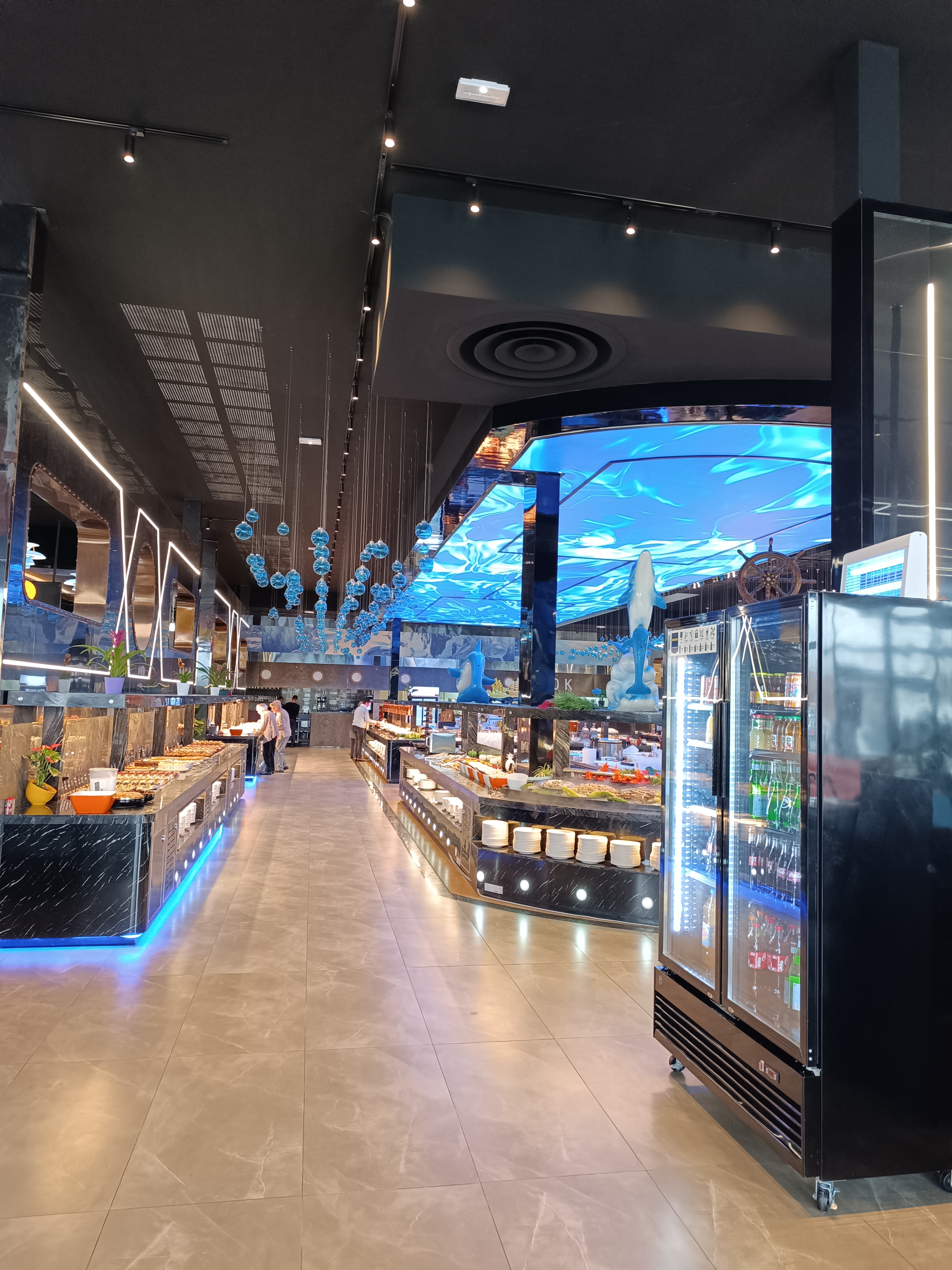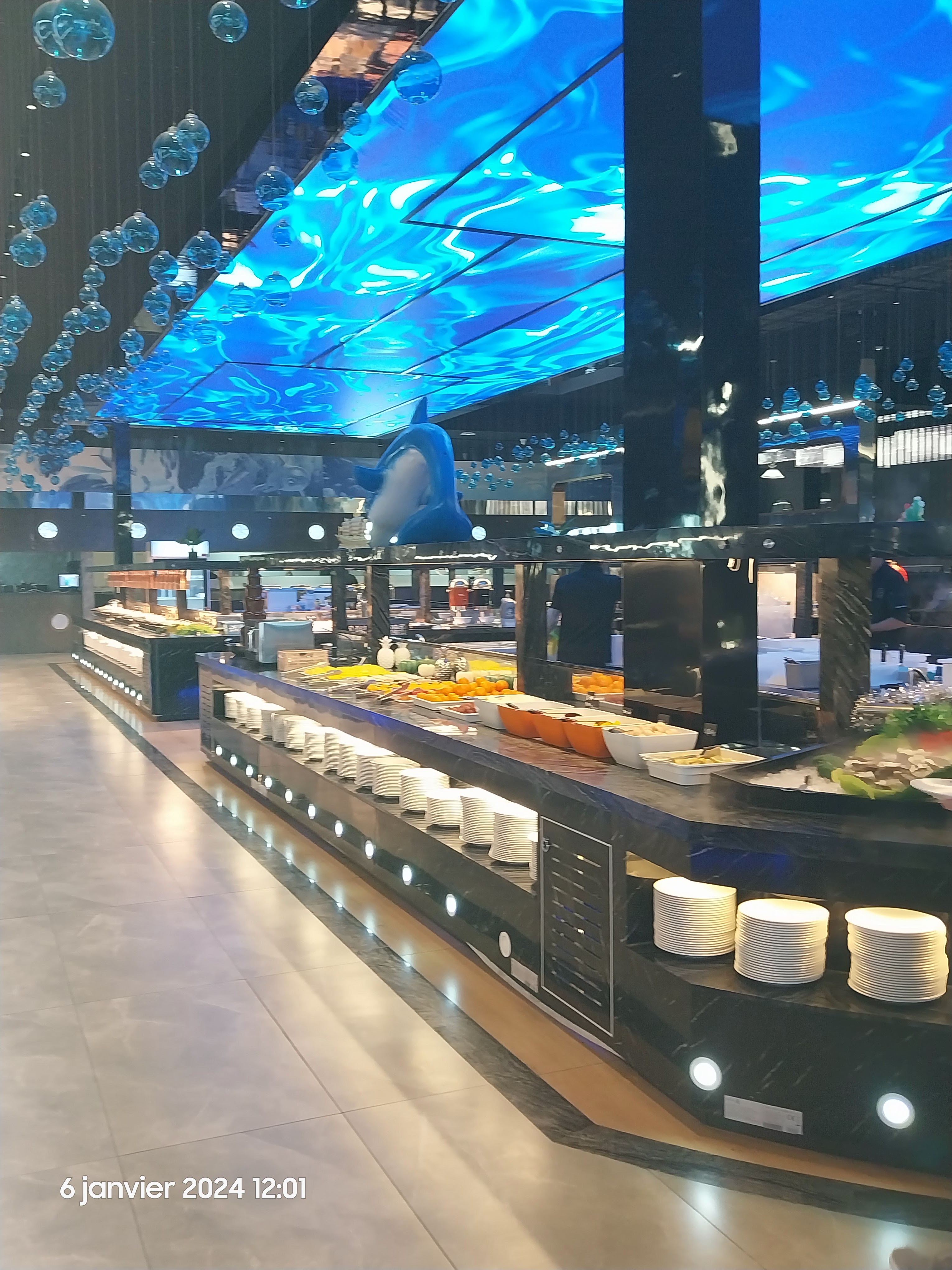 La déco est juste énorme on plonge dans un sous marin surdimentionné. Un ecran géant. Des images de poisson du mur au plafond juste sublime on se crois dans la mer. Le buffet juste wahou 🤩 énormément de choix et c'est bon il yen a vraiment pour tout les goûts. Amateurs de fruits de mer allez y vous serez ravis 😉. Le personnel accueillant et souriant. Un très très bon moment, nous reviendrons.