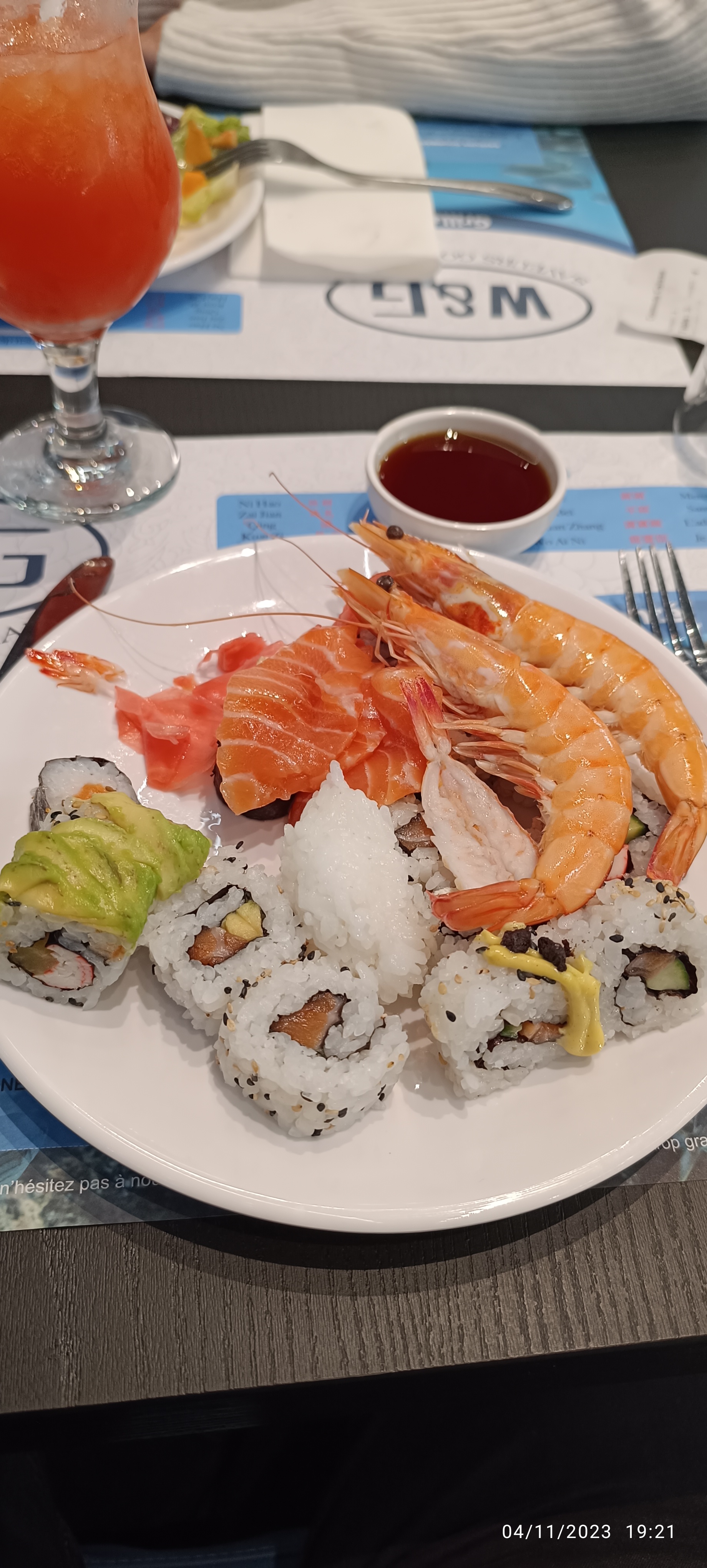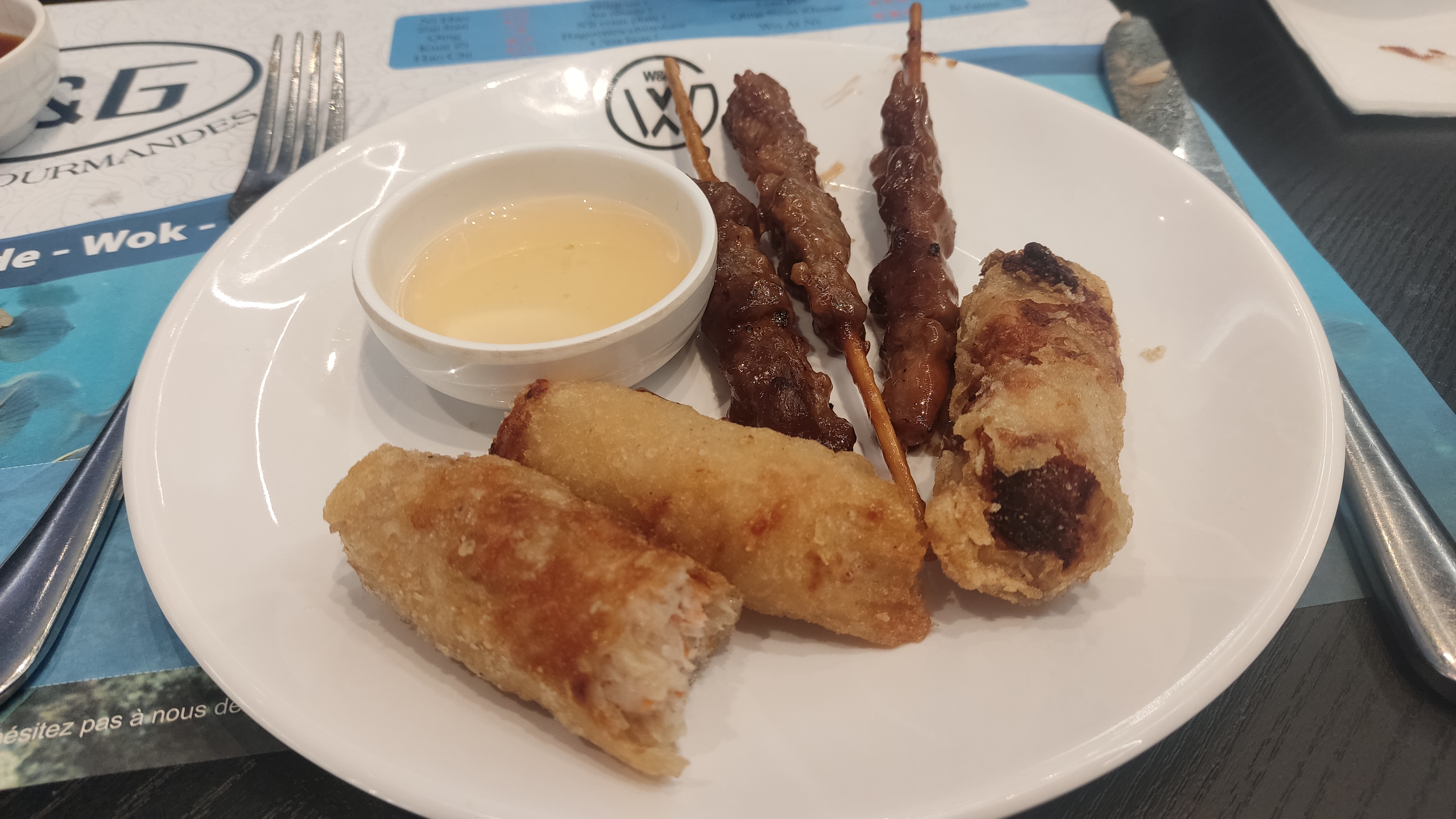 Alors par ou commencé c'est un lieu assez bruitant je suis passez devant la grande allé entre le wok et le bar j'ai vu de la nourriture pourri par terre sur le coup j'étais mort de rire et en même temps dégouter je n'ai manger que l'entrée malgré tout point satisfaisant les maki au saumon et au fromage sont assez bon pour le coup mais sinon pour le reste je n'ai pas pu le mangé par manque de gout et des saveurs vraiment perturbante c'est malheureux étant un grand fan de la culture asiatique je ne reviendrais pas. (les serveurs ne parlent pas le français c'est aussi regrettable)