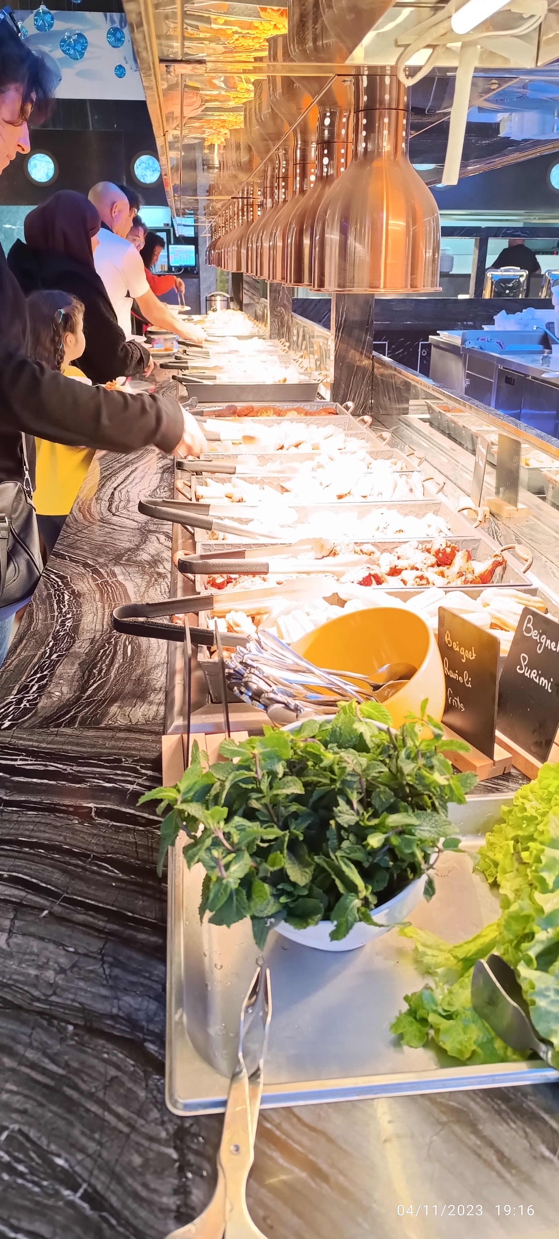 C'est le plus grand buffet à volonté à des kilomètres à la ronde ! Ce buffet est très varié et tout le monde se régale : des fruits de mer, de beaux morceaux de viande, des sushis, des nems, des plats en sauce....