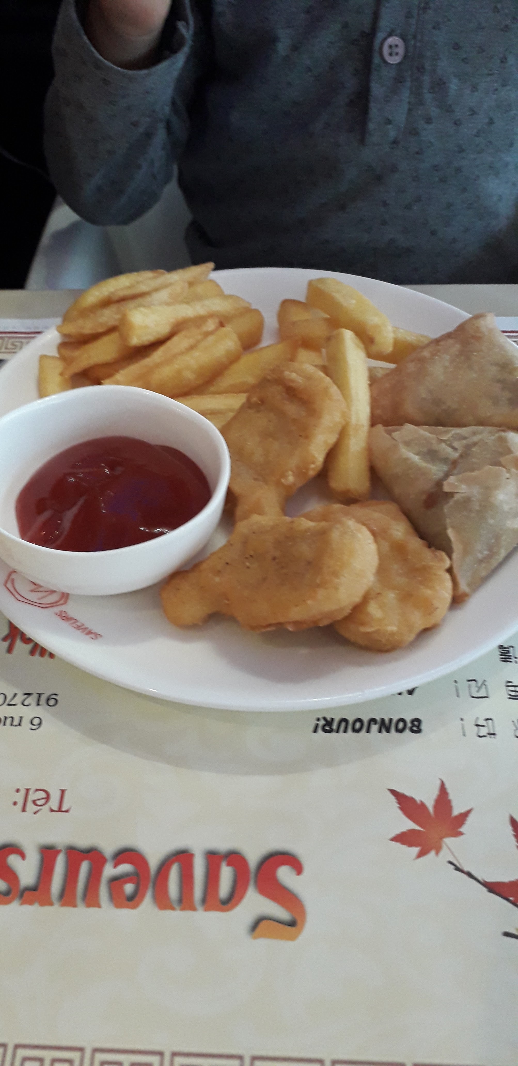 Alors leurs plats sont très bon, mais alors par contre y'a le patron qui passe 24h/24 dans les couloirs entre les tables, ils nous flicent il a pas autre chose a faire sérieux?? Et les entrées sont surgelés... Mais à la fin leur serviette chaude aux mains c'est un ++ mais leurs serveurs -- il ne savent pas parler français ils viennent tout droit d'Asie sa va pas du tout! Pas foutu de comprendre un mot zut alors!