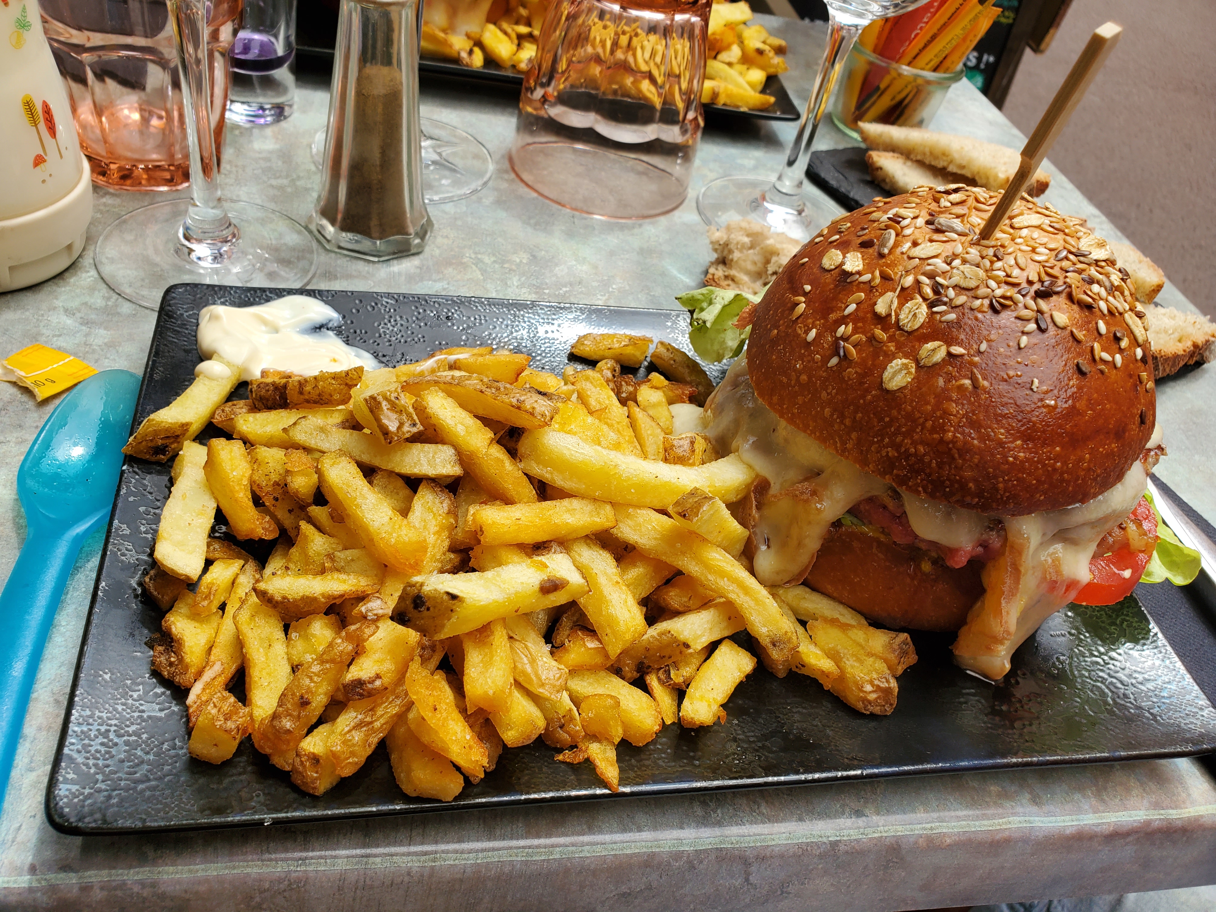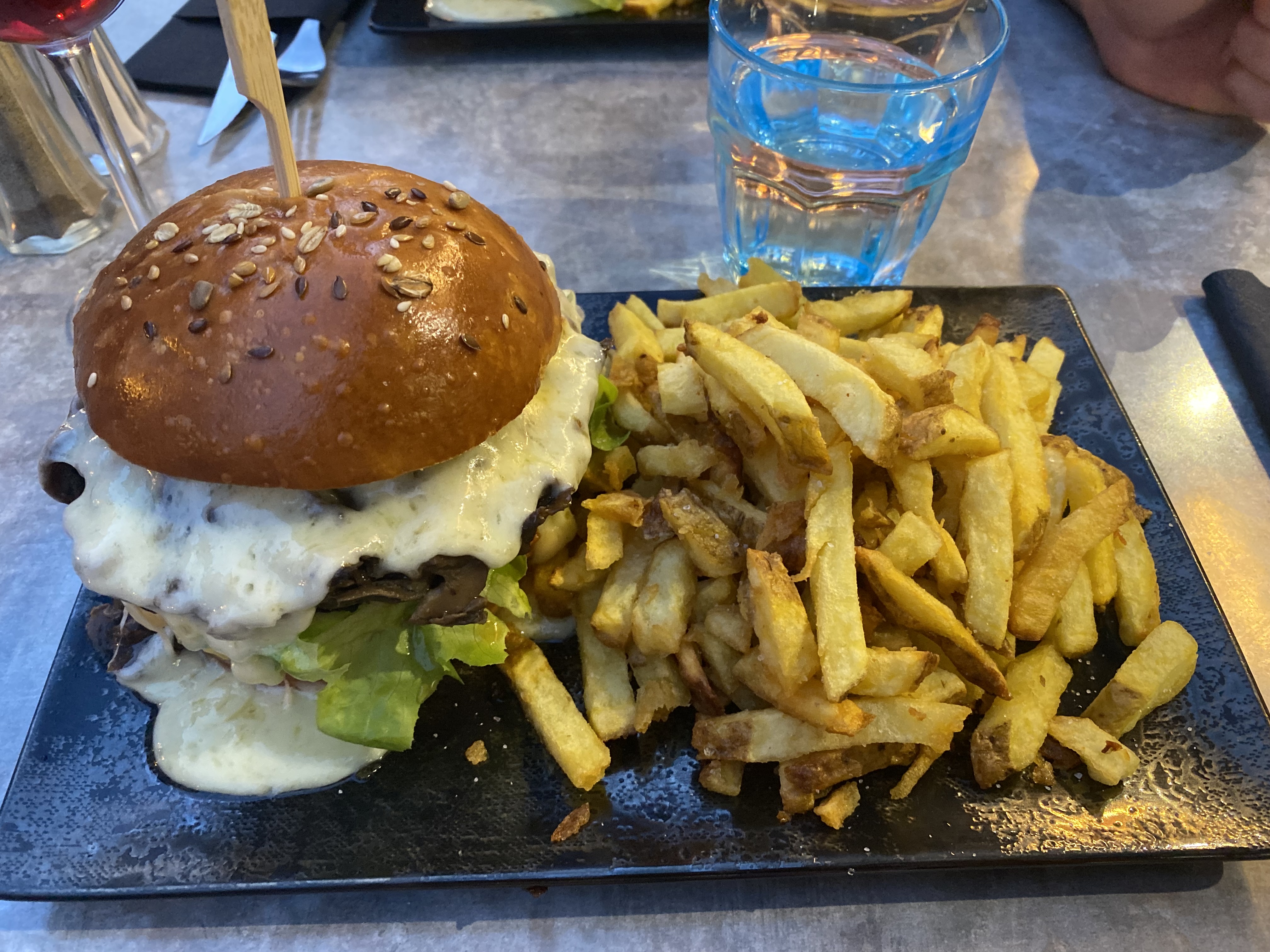 Super burger fait maison. Taille du burger d’allure d’une montagne ! Pain brioché du boulanger. Vrai Viande haché Sauce maison (même si je n’ai pas trop aimé) Frites fait maison Le seul petit hic la taille des assiettes Trop petite Super service qui s’est adapté Je recommande ✅