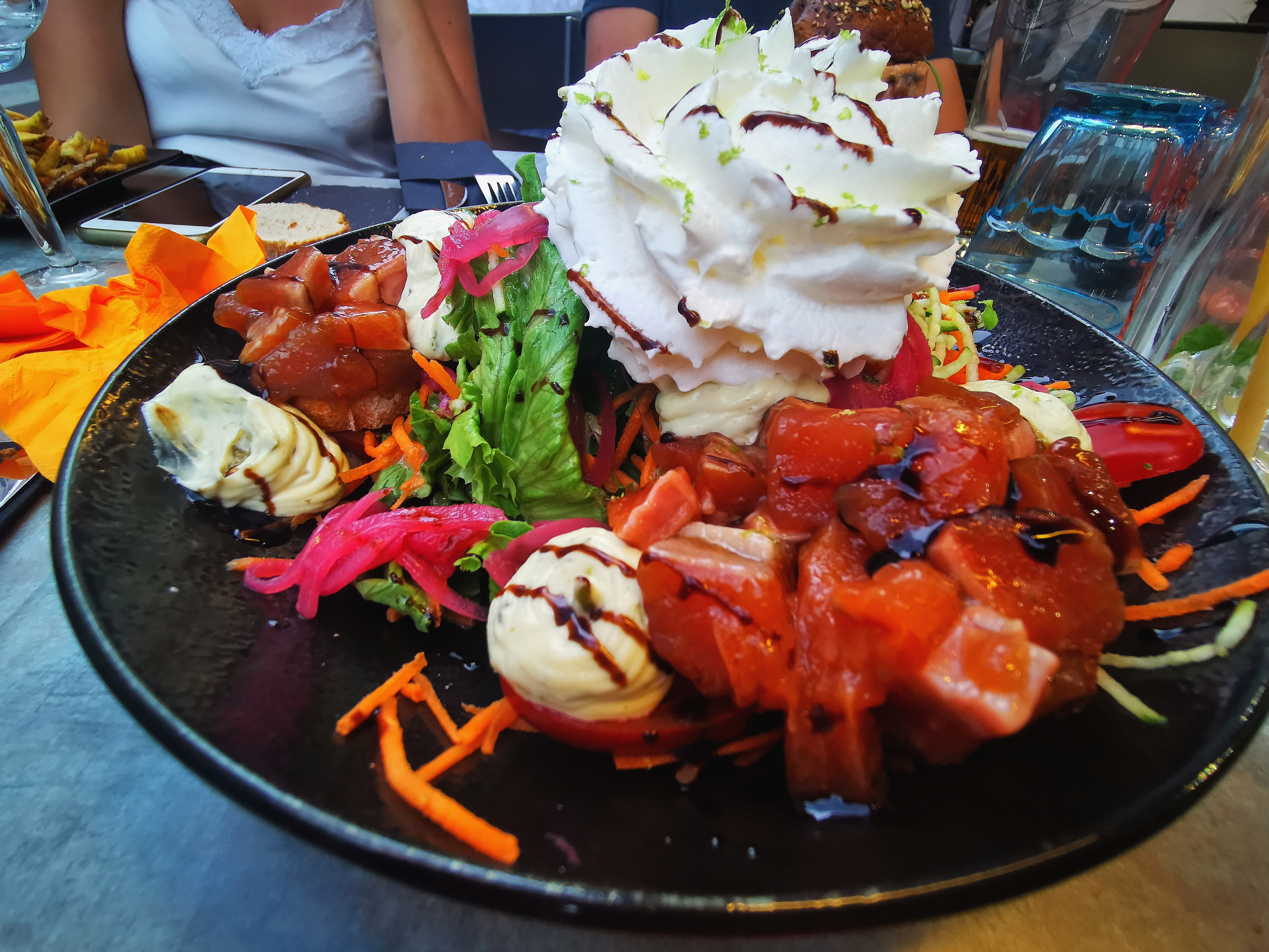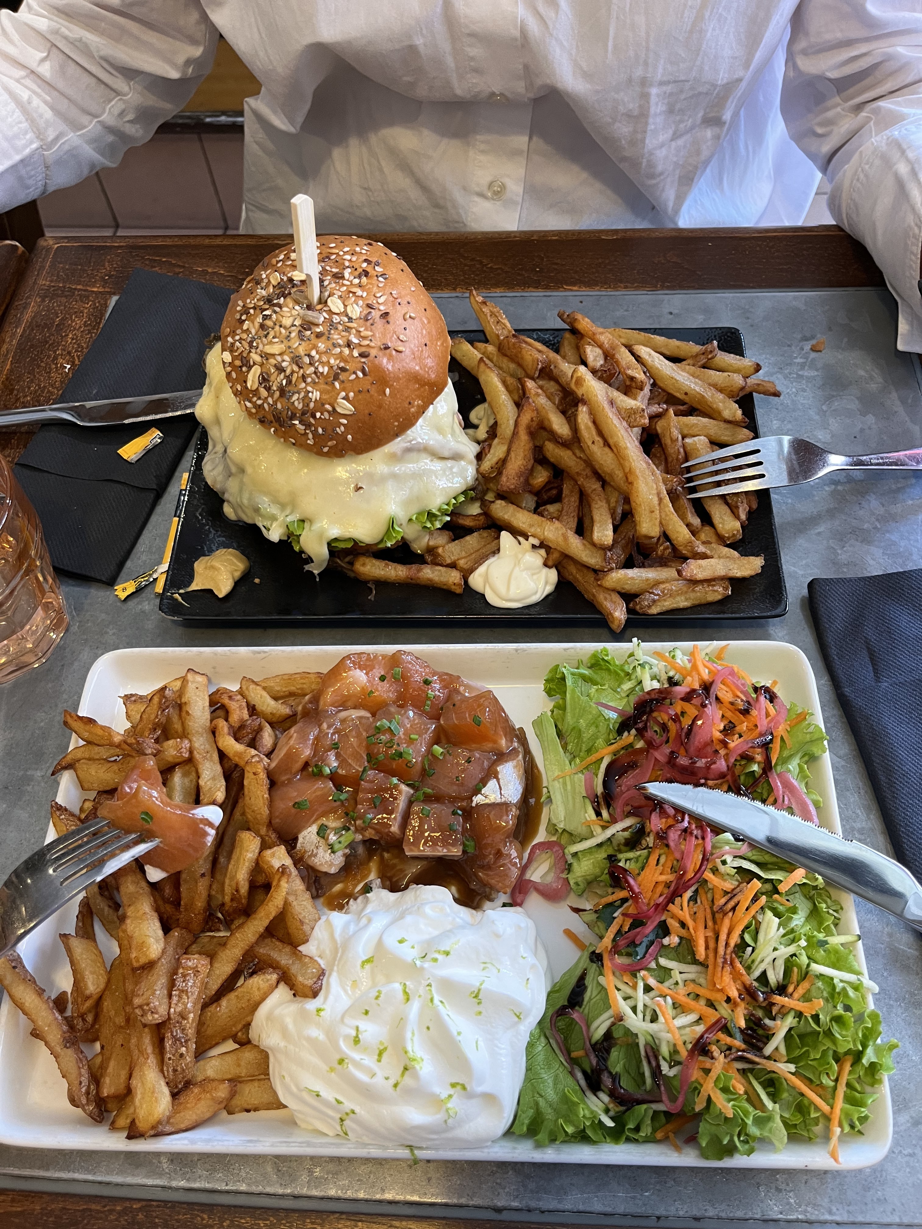 Ici vous trouvez un accueil super sympa et une carte qui fait très envie. Ma salade à la truite était parfaite (et très copieuse). J’ai envie de revenir tester les autres plats (les burgers ont l’air trop bien ainsi que les autres salades …)