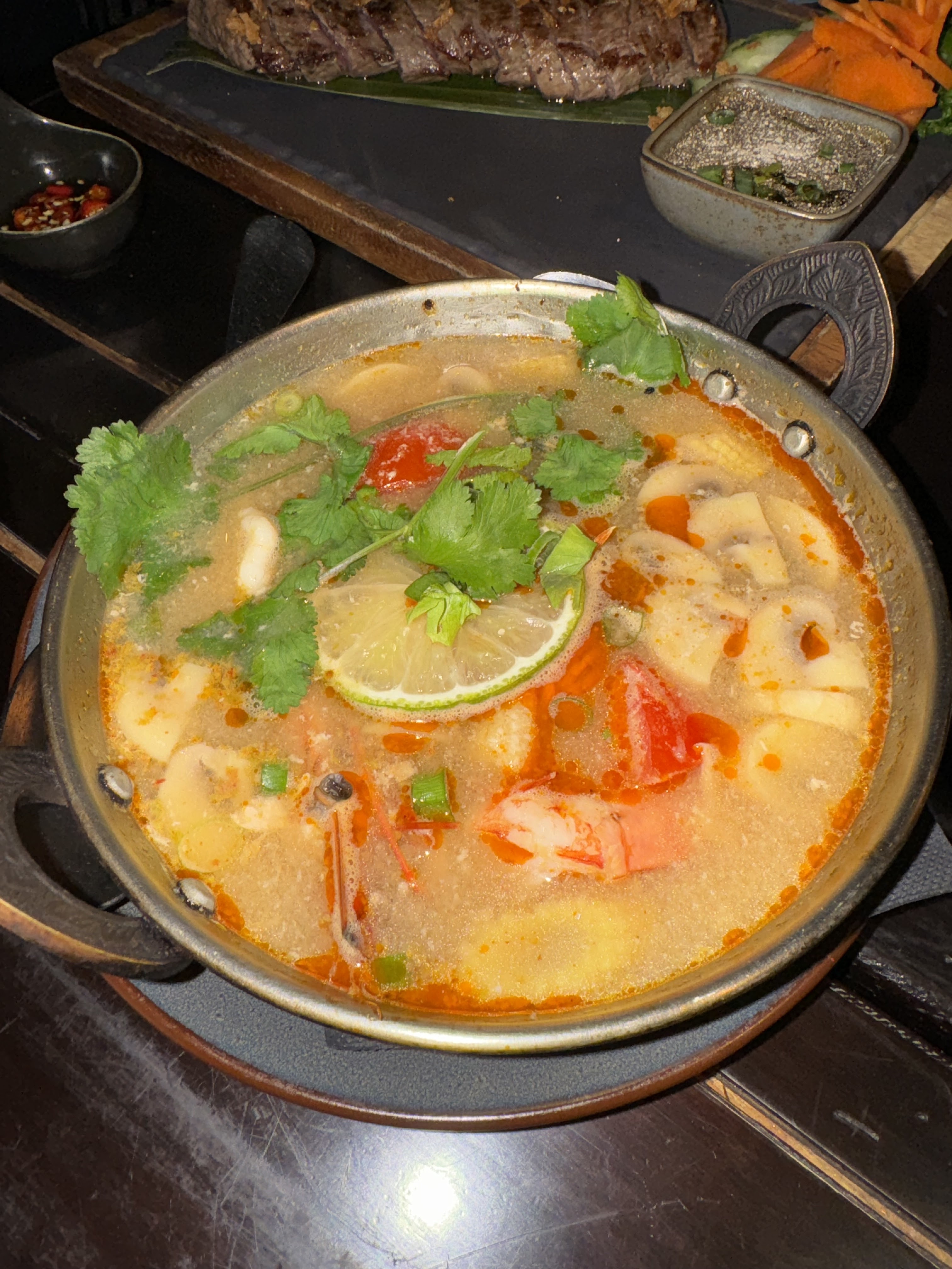 Je recommande, si vous aimez ce genre de cuisine, vous êtes au bon endroit, j'aime beaucoup l'aménagement et l'ambiance du resto, super service, les larmes du tigre a tomber par terre, la viande est d'une tendresse incoyable, on y passe toujours un bon moment. Ps pensez a réserver même a deux, sinon vous risquez d'être déçu 😞
