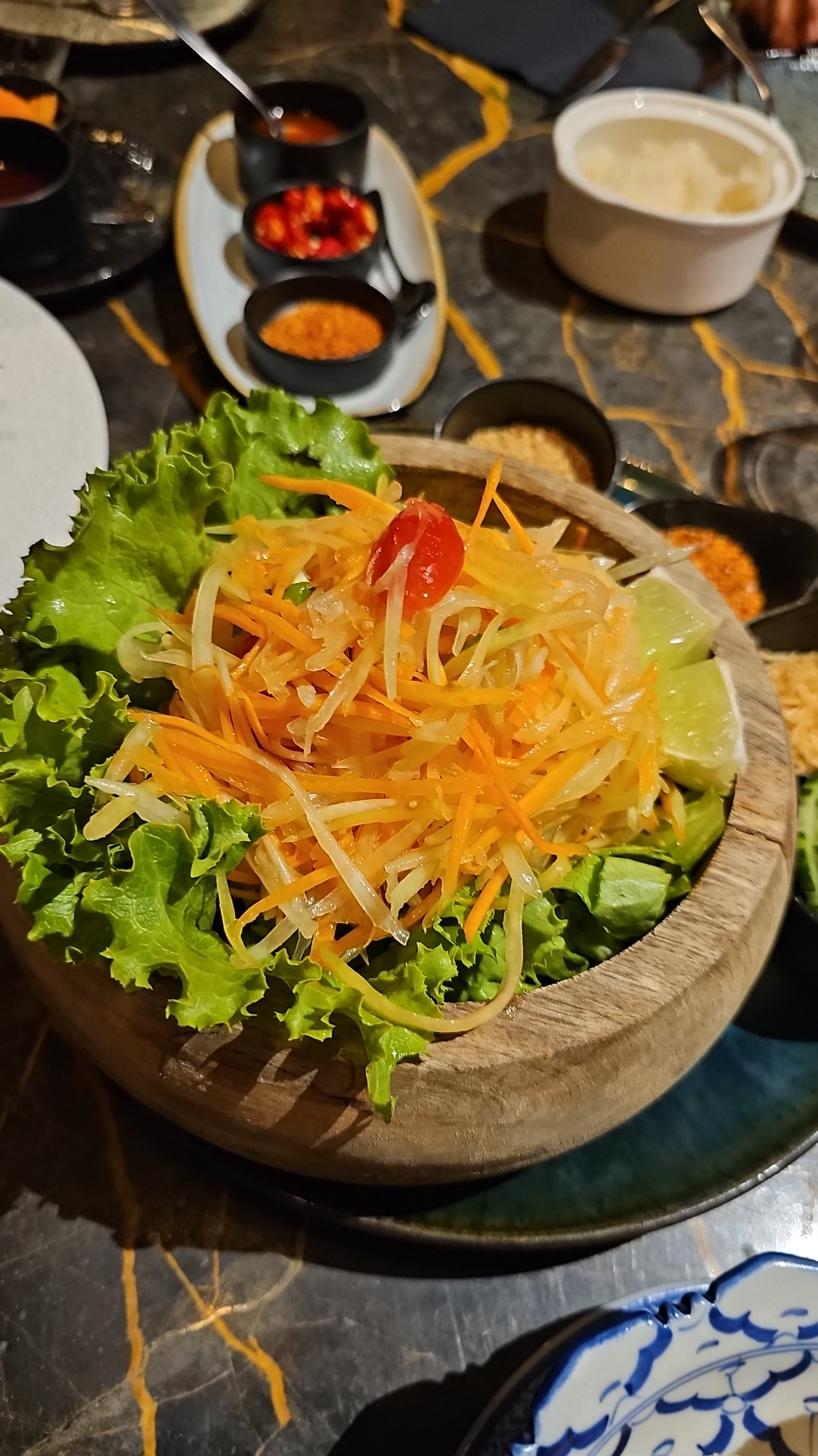 pad thail a 24€ sans coriandre et sans vraiment de goût par contre salade de papaye pas mal !