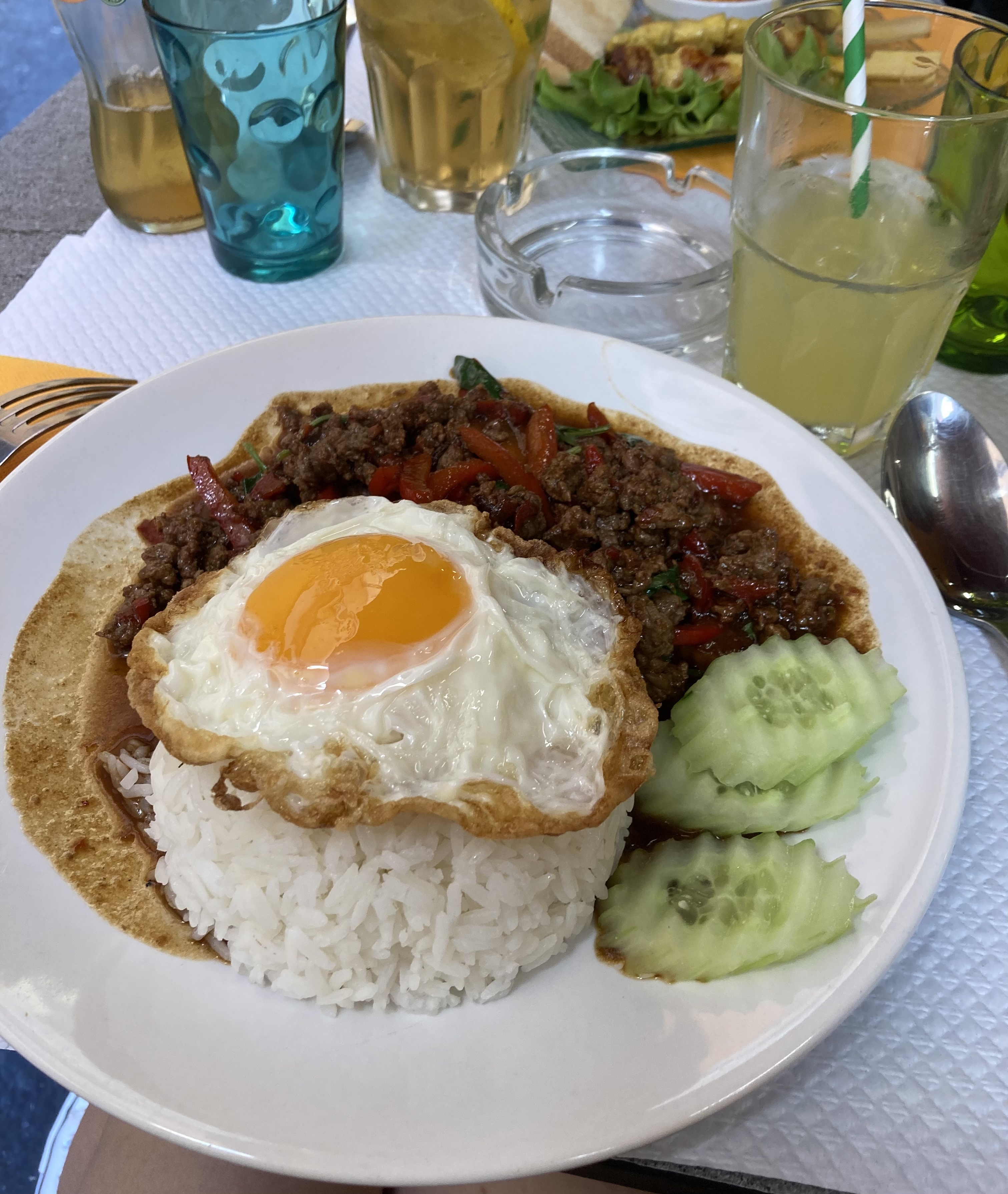 Au détour d’une petite rue , installée en terrasse au calme , un plat du jour plein de saveur et de fraîcheur , un laab au thon… la Thaïlande dans mon assiette ! Service rapide et sympathique , je ne peux que recommander !!!