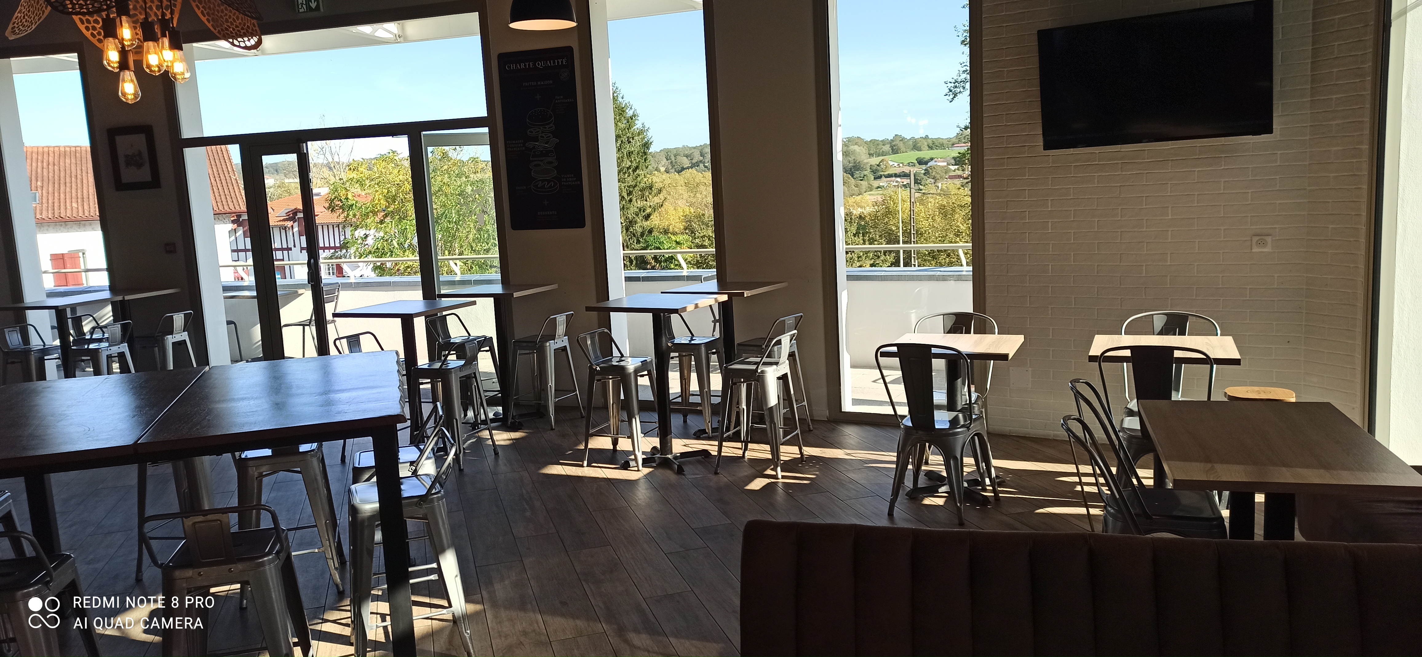 Restaurant de burger à l'entrée sud d'Ustaritz, près du centre commercial. Burgers, frites et salades bien frais servis dans une grande salle intérieure et aussi une grande terrasse extérieure.