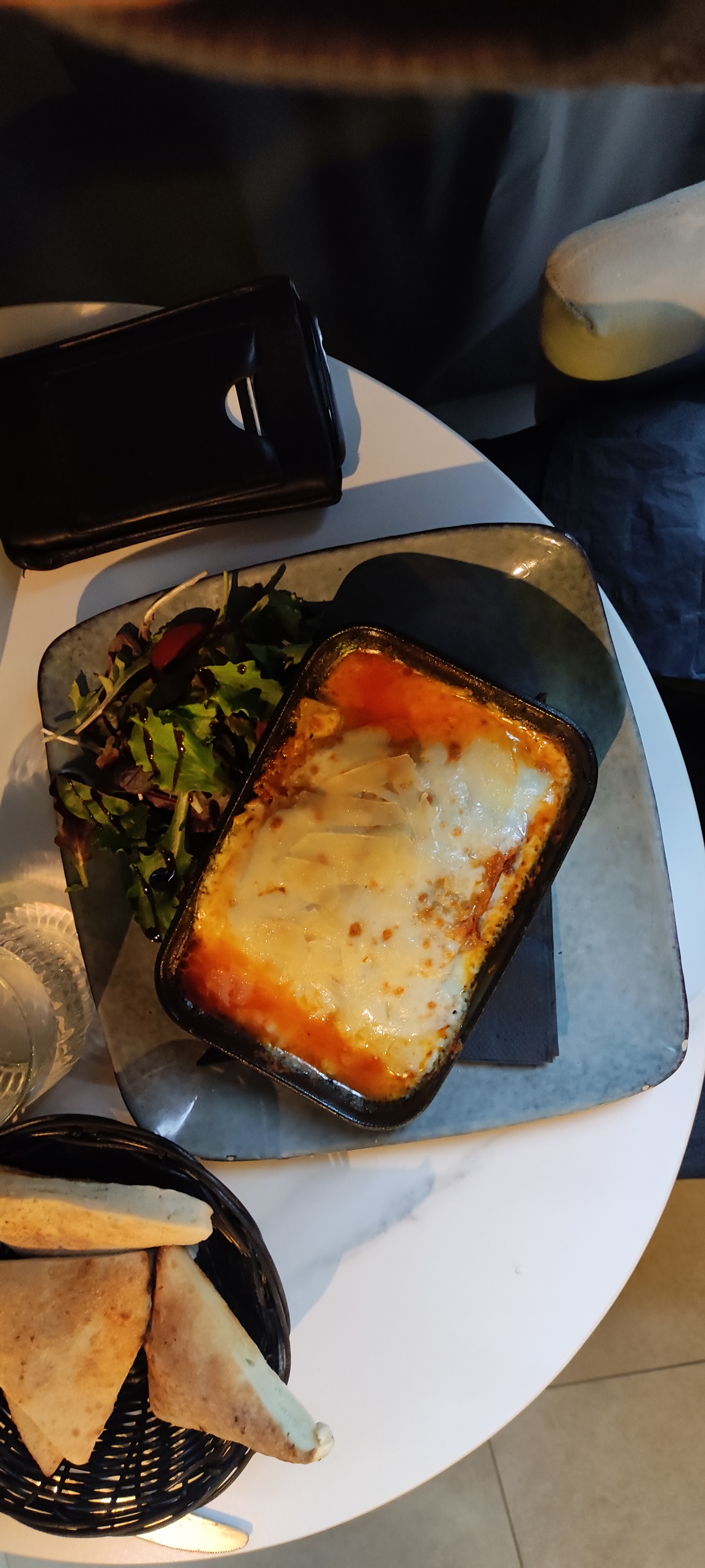 Malheureusement, j’ai été déçu par le service qui nous a lancé l’entrée et les plats En même temps. Nous avions commandé une burrata fritty totalement froide alors que normalement celle-ci devrait être chaude et nos plats étaient vraiment froid à part les lasagnes qui étaient extrêmement brûlante mais très peu de viande, l’accueil était assez agréable, mais le reste ne suffisait pas. Nous avons attendu plus de 30 minutes pour avoir nos plats. Nous avons eu le temps de finir nos boissons avant de recevoir notre commande.