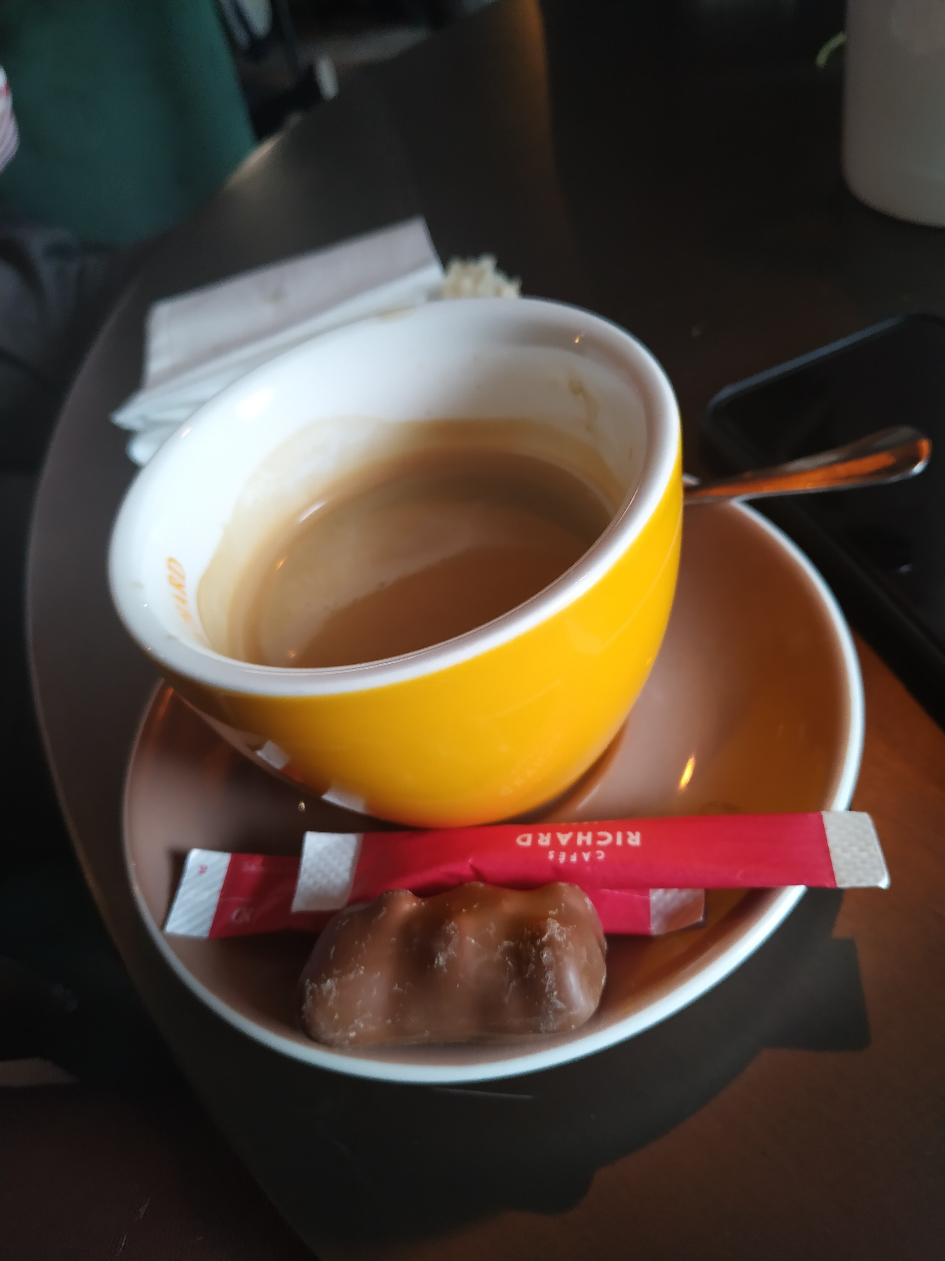 Peu convivial, bruyant. Terrine servie en bocal sur une planchette et pains dans un pochon (peu pratique) sur une petite table. Viande (escalope milanaise) caoutchouteuse et spaghetti froid, pas de déca. L'impression de déjeuner à la cantine pour un prix élevé. Très déçue.