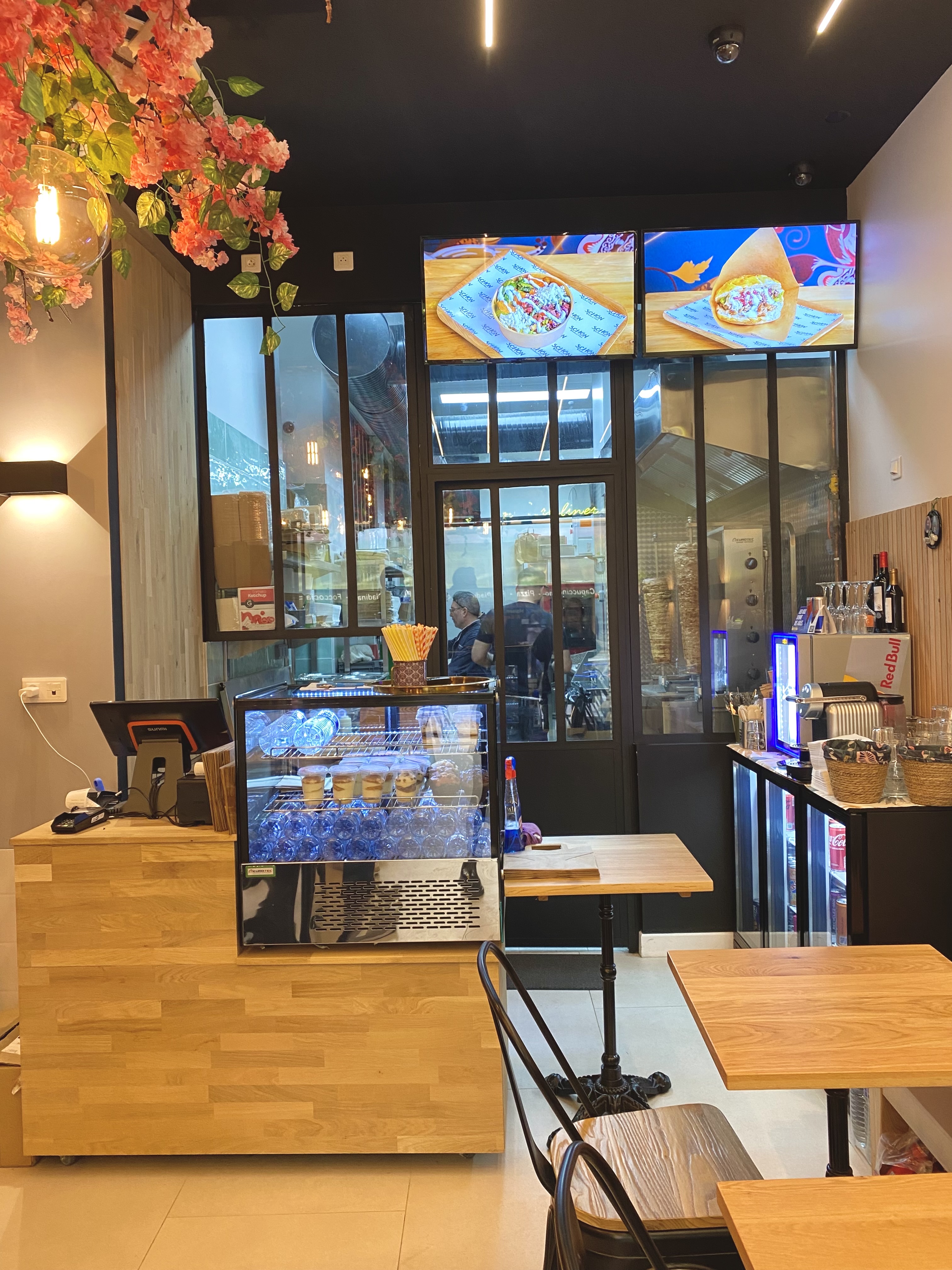 Accueil chaleureux Prise de la commande très rapide service impeccable J'ai beaucoup aimé le durum végétarien je le recommande fortement ce restaurant bravo a la jeune patronne !!!